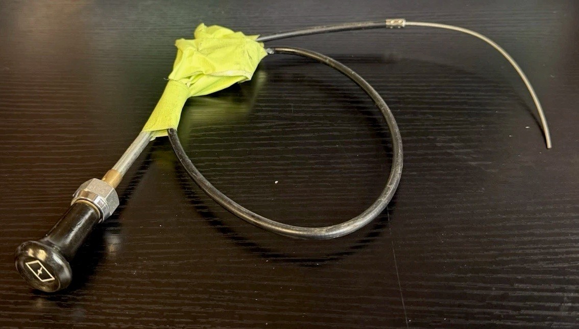 ###### **Toyota Land Cruiser 40 Series Choke Cable** Choke cable for a 40 Series Land Cruiser. Exact origin is **uncertain (may be OEM or aftermarket)**, but the unit is in **very good overall condition**. Smooth pull function and solid housing make it a great replacement for a worn or seized cable. **Fitment:** Toyota Land Cruiser 40 Series — various years (verify compatibility) Fits FJ40, BJ40, and similar 40 Series models Buyer should confirm exact fitment before purchase **Condition:** Very good used condition Cable slides smoothly No fraying or kinks in cable Knob, housing, and sheath in great shape Sold exactly as photographed **Notes:** Ideal for restoration or replacing a stiff/damaged original choke cable Uncertain OEM status; quality and condition are strong Ready for install after basic inspection **Keywords:** Toyota Land Cruiser, FJ40, BJ40, 40 Series, choke cable, carburetor cable, pull cable, Land Cruiser restoration, OEM Toyota, classic Toyota parts.