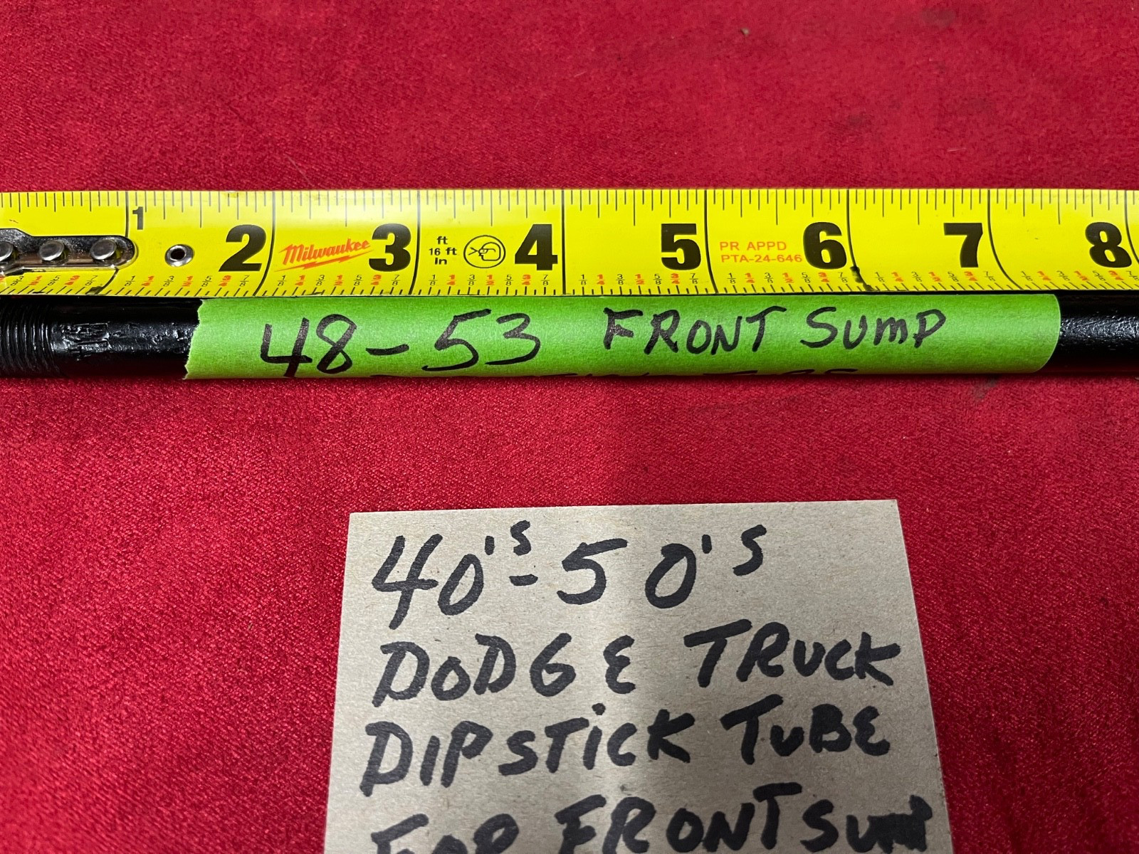 40'S 50'S DODGE TRUCK flathead 6 cylinder dip stick tube pipe thread screw in type for a front sump oil pan style see all pictures for information if your usage.