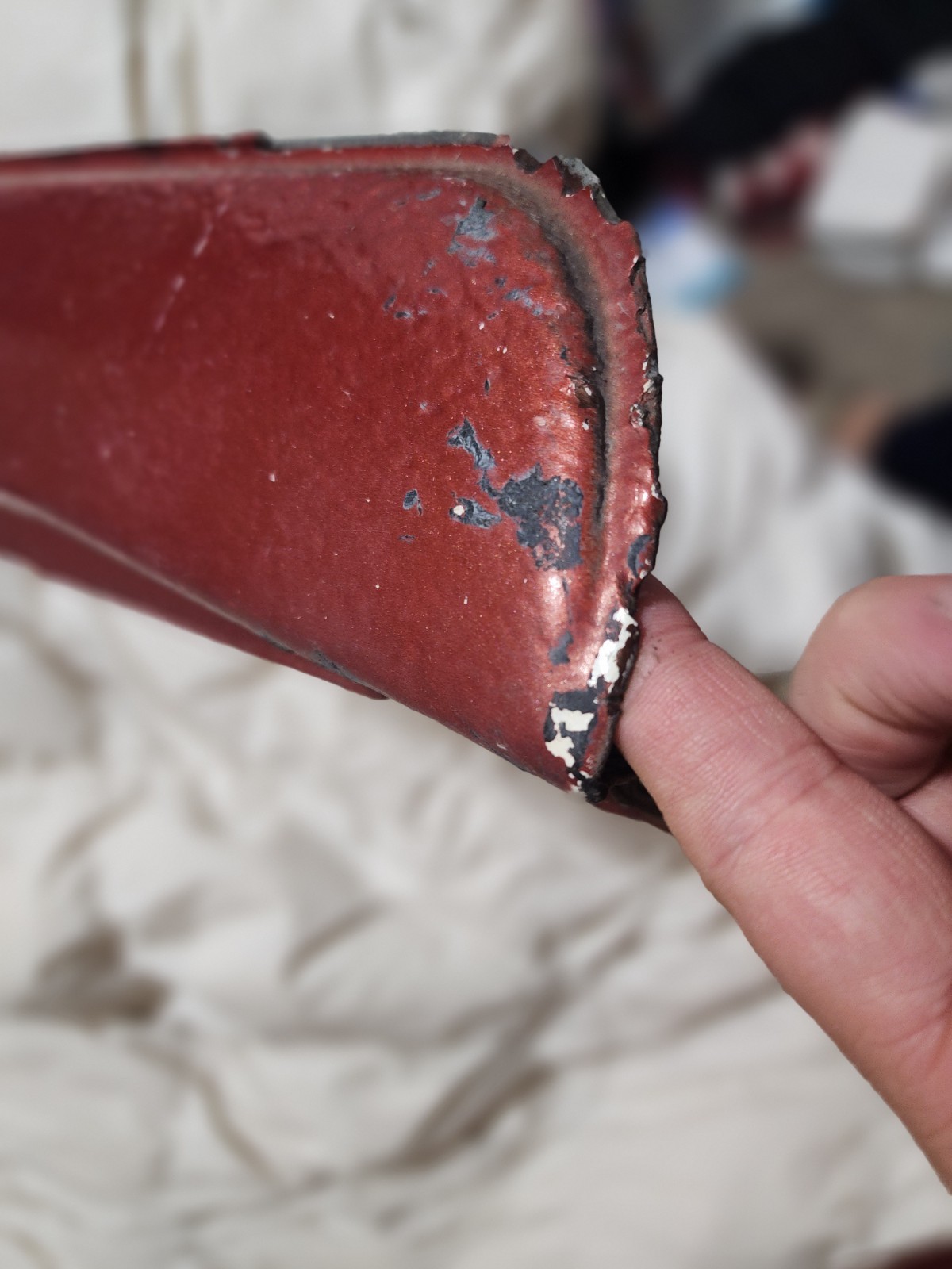 Eccellent condition. That black stuff is tar and can sand off. One nick. No rust. Original to the car.