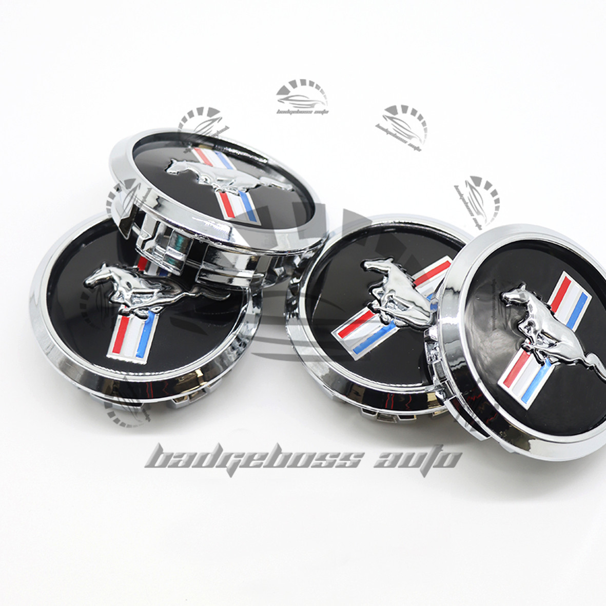 4Pack For 2012-2025 Mustang GT Black w/ Chrome Running Horse Wheel Center Caps