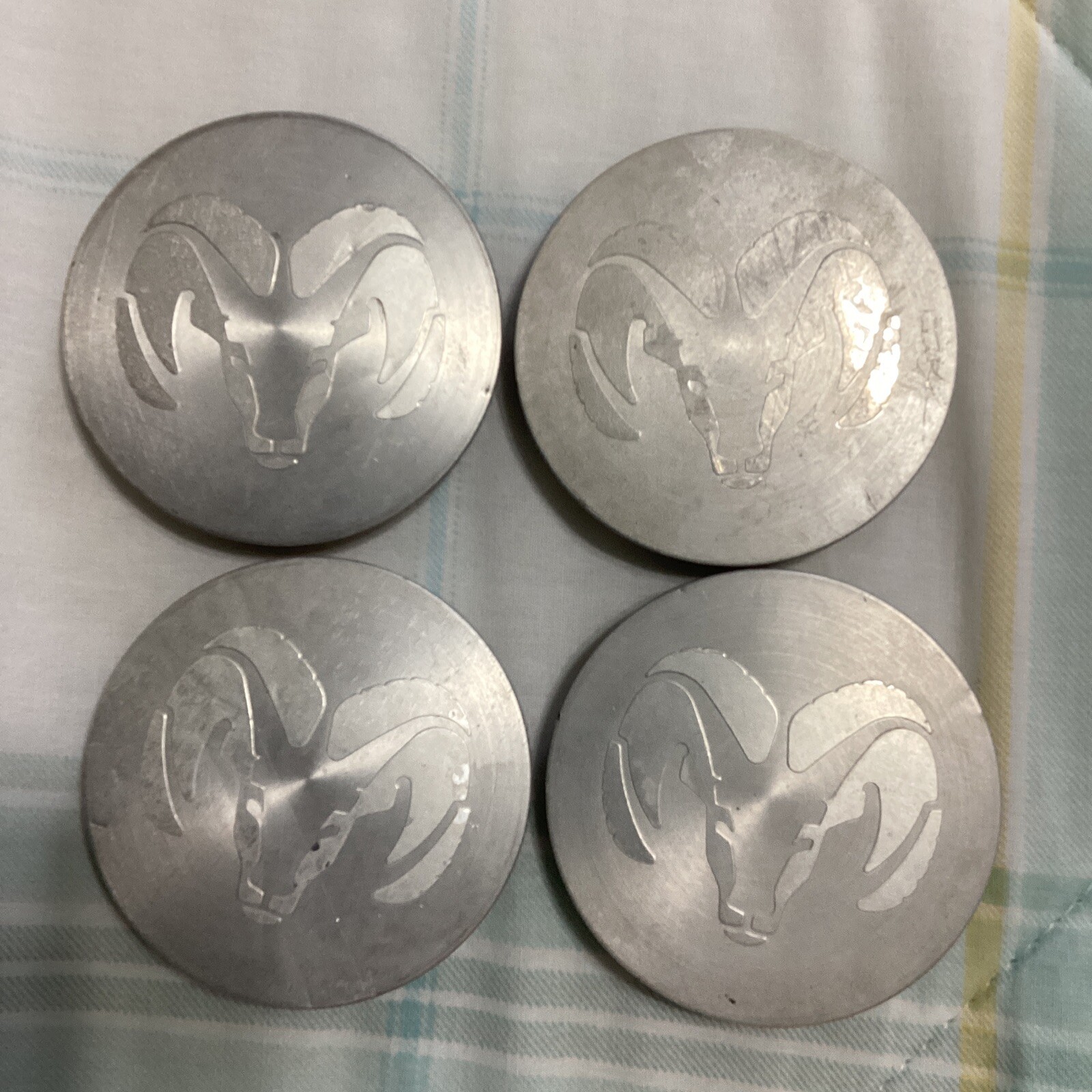 **4pcs 1996-2004 Dodge Ram Dakota Durango Aluminum alloy wheel center cap 63mm.** **Used item showing scratches, discoloration,dings,overall still intact,to avoid costly return please check your part number confirm Desame with my listing thanks for looking.**