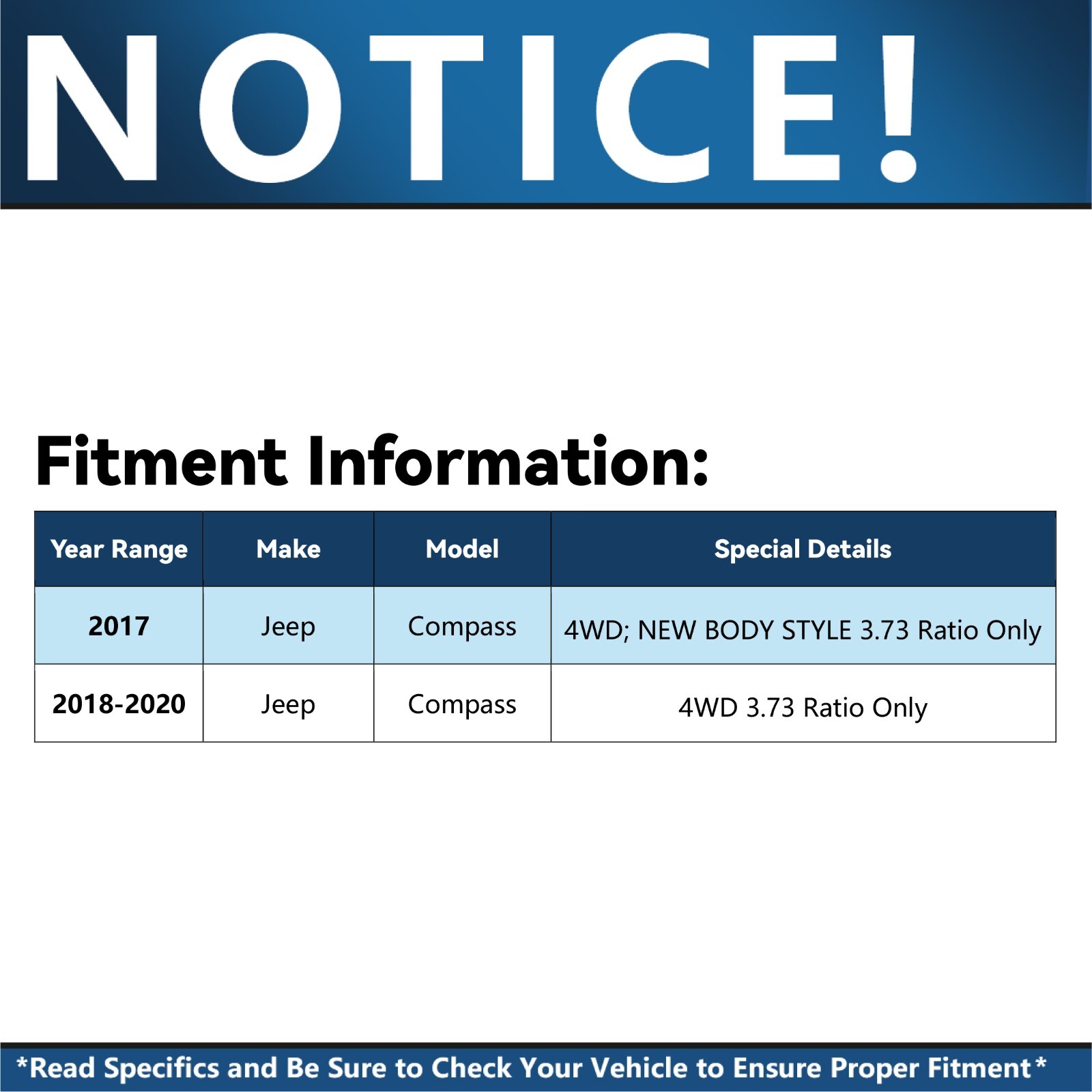 Call us! Monday-Friday 8am - 6pm ET Saturday 8am - 4pm ET  **Remanufactured****CV Axle Assembly** **Specifications** **Overall Length:****23 1/2"** Inner Spline: 30 **Outer Spline: 27** **Inner Shape:** **Male** **ABS on Axle: No** 1x Front Left CV AXLE Assembly - Driver Side - 1866\_AX **FITS** > **MAKE****MODEL****YEAR RANGE****SPECIFIC DETAILS** JEEPCOMPASS20174WD; NEW BODY STYLE 3.73 Ratio OnlyJEEPCOMPASS2018 - 20204WD 3.73 Ratio Only Not what you were looking for? **Brand Information** Detroit Axle, offers parts and accessories for the perfect combination of quality and value. Detroit Axle offers cost-conscious customers a full range of parts to a broad range of applications - Provides extensive coverage of bearings for a broad range of automotive and heavy-duty 4x4 wheel applications. - Manufactured in ISO 9000 / ISO 9001 / ISO 9002 certified facilities gives the fit, performance Reliability and durability of OE. - Detroit Axle offers an extensive lineup of Wheel Bearings, CV Axles, Power & Manual Steering Rack & Pinions, Gear Boxes, Ready Struts, Drive Shafts, Prop Shafts and much more. **Manufacturer Information** Detroit Axle offers an extensive coverage of bearings for a large range of automotive and heavy-duty wheel end applications. Our Products are manufactured in ISO 9000 / 9001 / 9002 certified facilities. Detroit Axle products deliver the look, feel, fit and performance of OE. Manufactured with Internal bearing seals that are specifically designed to combat all types of road conditions to keep debris out and keep the bearing turning. With an OE design, simple installation and long life as a guarantee.  Payment Visa, and MasterCard are the accepted forms of payment. Immediate payment is required for all orders. Shipping All orders placed before 2pm (Eastern Standard) will be shipped the same business day. Orders made after 2pm (Eastern Standard) will be shipped the following business day. All orders in the continental 48 States will be shipped FREE of charge via FedEx or USPS at our discretion. Orders outside the continental 48 States (Alaska, Hawaii, Puerto Rico, US territories, or International) will be required to pay a surcharge for shipping. International orders will be shipped via USPS Priority Mail International.