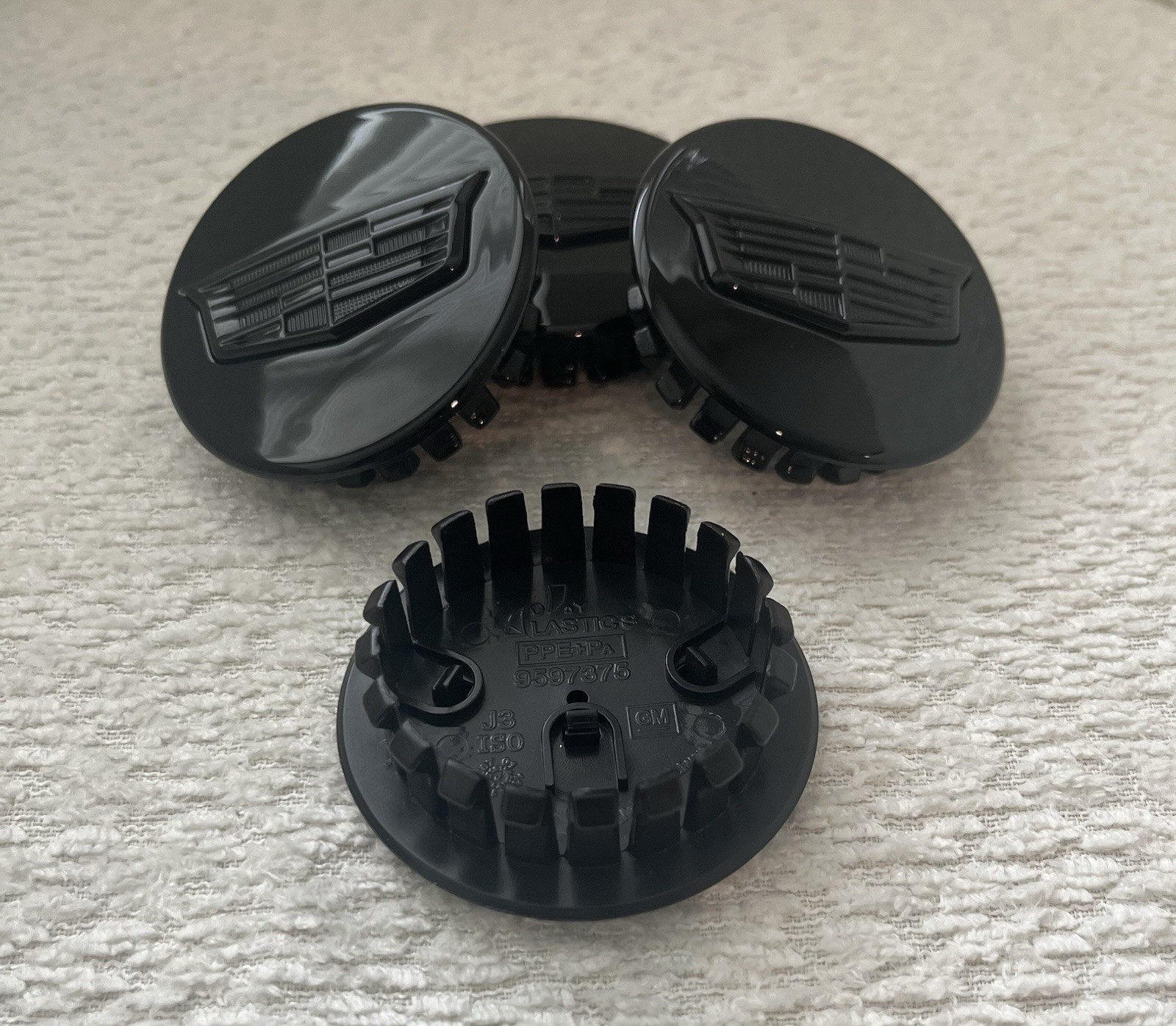 **Give your Caddy some attitude! 🔥 Set of 4 Gloss Black with Black Logo 67 mm (2.625") Center Caps — fits ATS, CTS, DTS, SRX, STS, XLR, XTS. Fast & Free Shipping from the USA!** Designed for a perfect OEM fit, these caps add a sleek, factory-fresh finish to your wheels. It's essential to check your existing center cap size or wheel hub diameter to confirm proper fitment._** * * * **OEM Part Numbers (examples):** - 9596403 - 9595370 - 9595019 * * * **Why Buy From Us?** 🚀 US Seller — Fast Shipping ⭐ Trusted Seller — Quality Guaranteed ✅ Hassle-Free Returns **🛠 Installation Guide:** **1️⃣ Remove the old center cap:** - Gently pry around the edges of the existing center cap using a **plastic trim tool** or a **flathead screwdriver** (wrap it in a cloth to avoid scratching your wheel). - Pop it out carefully to prevent damage to the wheel finish. **2️⃣ Clean the wheel hub area:** - Wipe the center hub area with a **clean, dry cloth** to remove dirt, debris, or grease. This ensures a secure fit. **3️⃣ Align the new cap:** - Line up the **tabs/clips** on the back of your new center cap with the slots in the wheel center bore. **4️⃣ Press into place:** - Using even pressure, **firmly press the cap straight into the center hole** until it snaps securely into place. - Check that it sits flush all around and is securely fitted. ✅ **Tip:** - Avoid using hammers or tools to force the cap in, as this may damage it. - Double-check fitment after driving a short distance to ensure the cap remains secure.