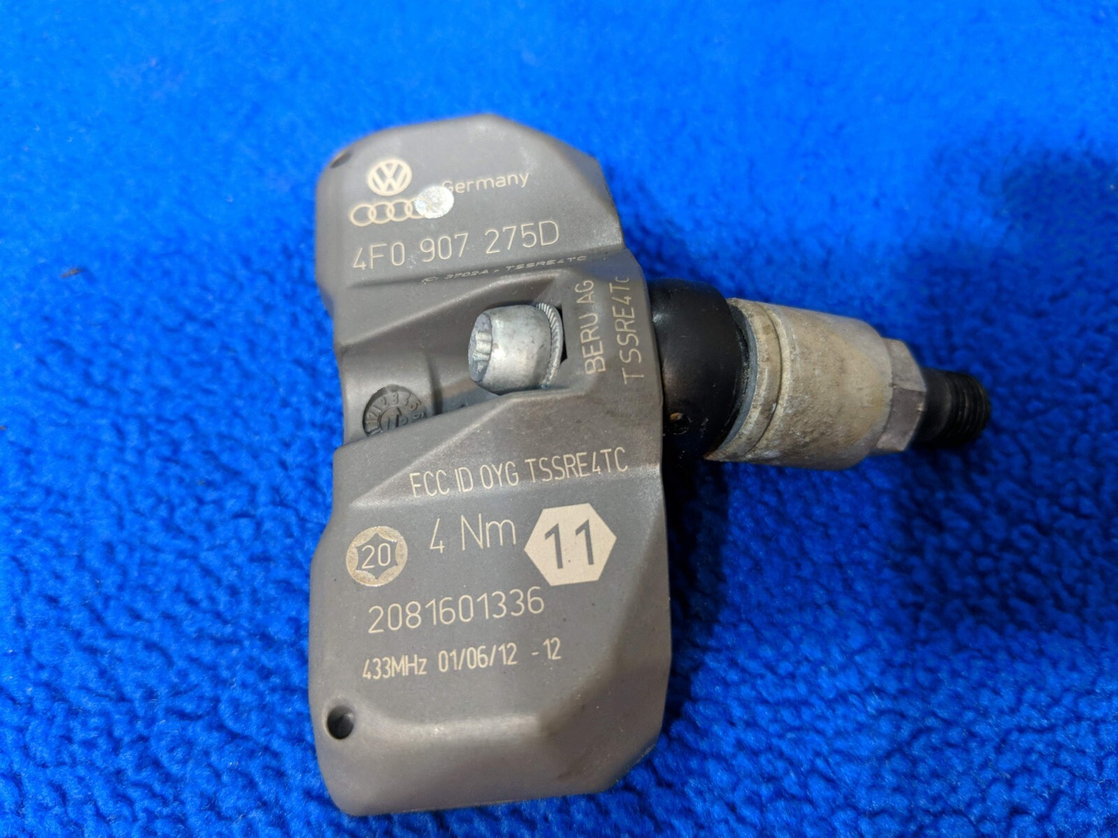 4x Complete Genuine OEM Audi Volkswagen TPMS Tire Pressure Sensor 4F0907275B set