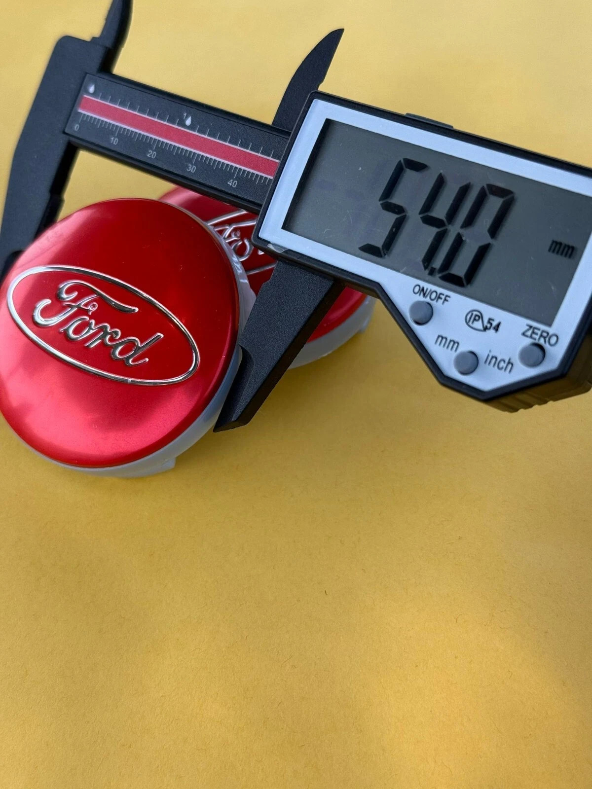 Set of 4pcs Red Color This Center Cap fits Most Current FORD Wheels which required 54mm center cap If you are unsure if this is the correct cap for your vehicle feel free to contact us. This part is stamped with 6M21-1003 AAbl or 6M21-1003 BAal on the back. Center Cap Specs Outer Diameter : 54mm