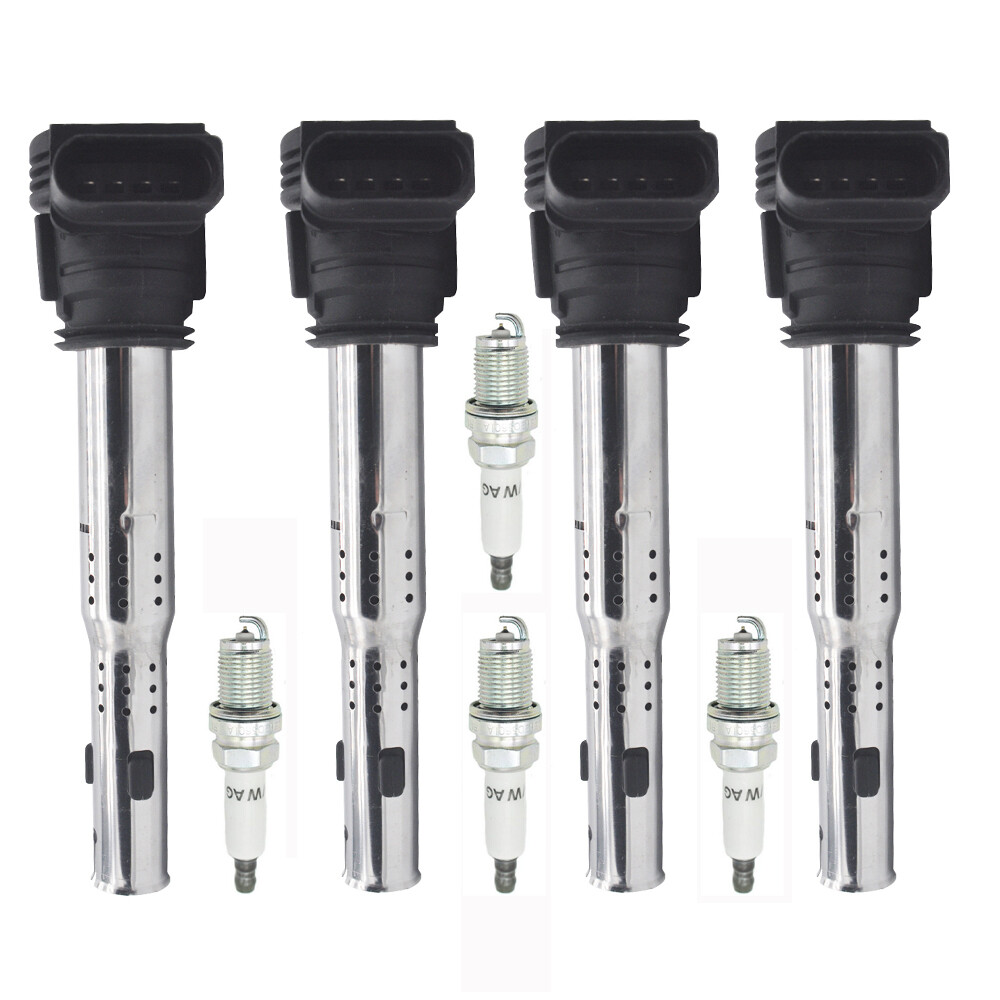 4X Ignition Coils + 4X Spark Plugs for 2006-2014 Volkswagen GTI Eos Jetta 2.0L
