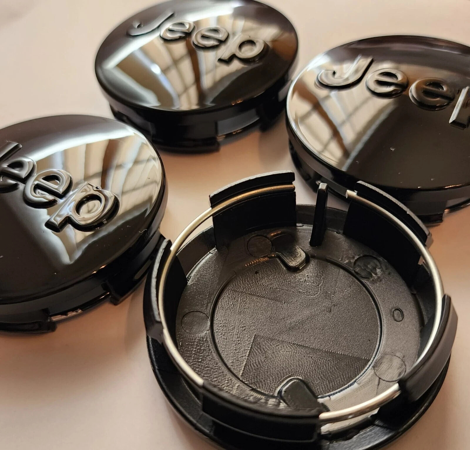 4x Jeep Glossy Black 63 mm Wheel Center Caps, Grand Cherokee-Wrangler-Compass...