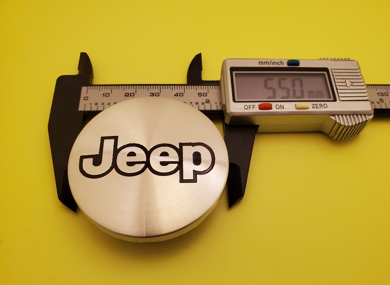 **Set of 4pcs JEEP center caps** FITMENT : Fits most of JEEP models with Factory OEM JEEP wheels such as Liberty, Grand Cherokee, Wrangler, Commanderand many more, and aftermarket wheels that requires 55mm (2.16 inches) center caps.Comparability chart is for guidance purpose only, it does not guarantee fitment in some cases because there are multiple size options depending on which wheels you have. Please ensure fitment, match your part number to the list below or measure the hole on your wheel **before**purchasing this Set!! **Diameter:** Outer diameter: 55 mm (2.16'') Inner diameter: 47 mm (1.85") **Compatible Part Numbers:** 52090401 52090402AA 5CF97TRM 52059522AA 52059522AB 5CF97L9X 50F97TRM **Center Cap Specs** **:** • You will receive a SET of (4) Four Pieces • These are high quality ABS and aluminum material center caps • The color is **Black Jeep logo on Brushed** **silver color base.**