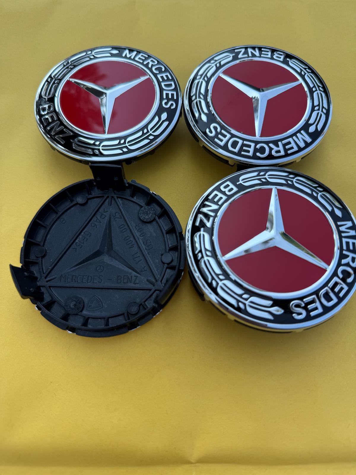**Set of 4 pcs Mercedes-Benz Wheel Center Caps with 1 Year Warranty** FITMENT : These standard-sized center caps, 75 mm, fit most Mercedes-Benz models produced after 1991. However, please measure your old caps or the center of your wheel before ordering to ensure proper fitment. DIAMETERS : 2.95" or 75 MM ( Outer ) 2.75" or 70 MM ( Inner ) COMPATIBLE PART NUMBERS : A2204000125, A1714000025, A1714000125, A1634000025, A2014010225, B66470203, B66470120, B66470201, B66470202 PRODUCT SPECS : • You will receive a SET of (4) Four Pieces • These are high quality materiel center caps • The color is silver and red. • 1 Year Warranty Replacement - Warranty Only Covers Malfunctions; It Does NOT Cover Physical Damage **Perfect Condition Guaranteed! Enjoy peace of mind with our 60-day free return policy. If you have any issues with your order, we’ve got you covered. Just contact us for the fastest solution!** **...**