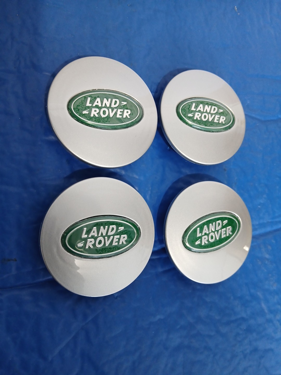 4x, Set of Land Rover Silver-Green Wheel Center Hub Caps, HSE Land Rover Center