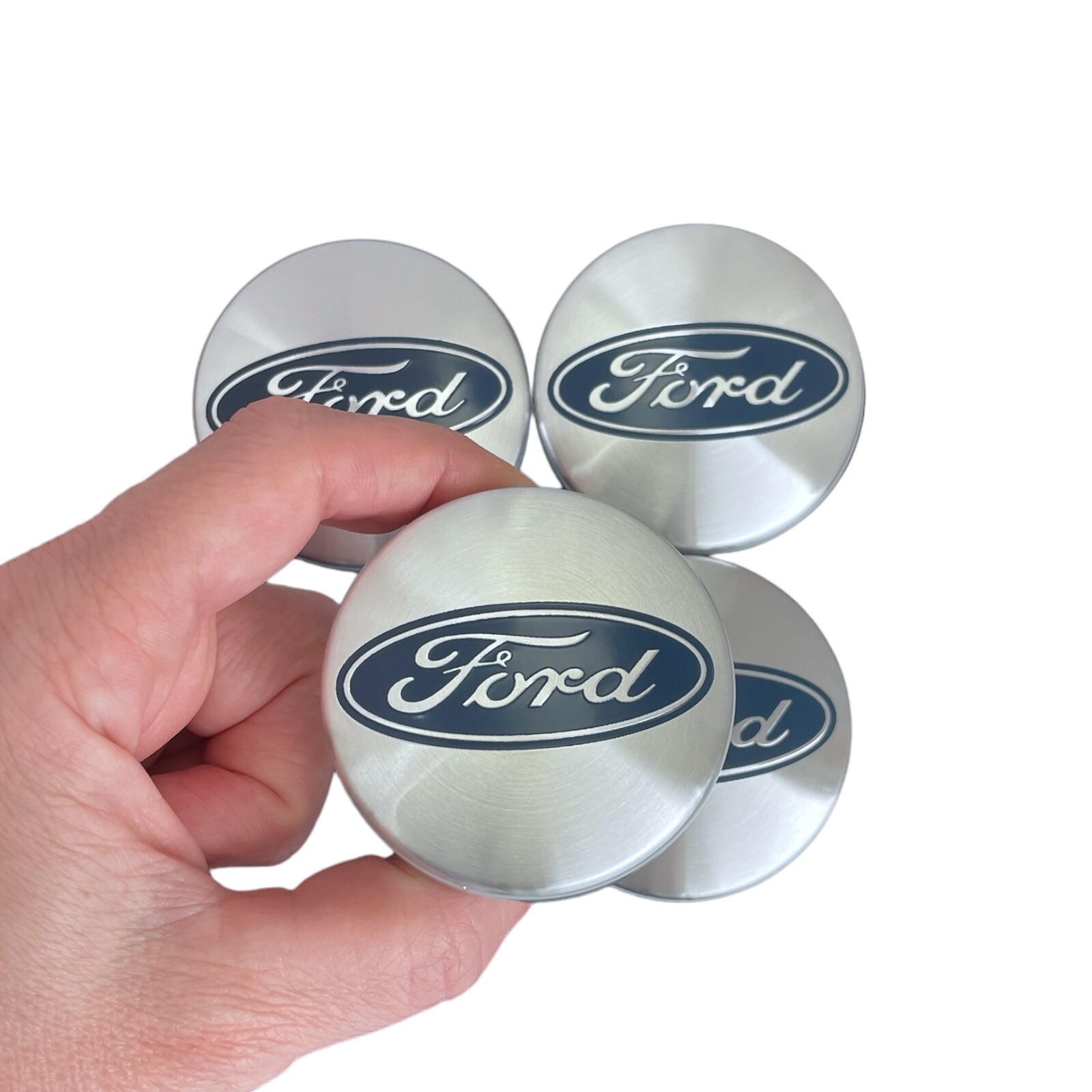 4x Wheel Center Caps Blue on Silver Emblem Hubcaps Cover for Ford