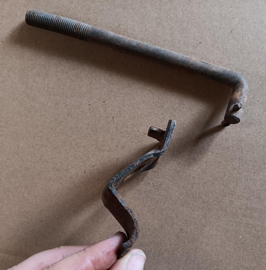 This listing is for a spare tire hold down bolt and bracket for 1951-1952 Chevy cars. I would assume this would also work for 49-50 but it's out of a '52 so no guarantees there. Everything needs to be blasted clean and repainted and the threads cleaned out with a die, otherwise good. Usually I can ship stuff out within a couple days, but once in a while the shop is busy and it'll take a bit longer. Let me know if you need this right away and I'll see what I can do. Feel free to email me with any questions.