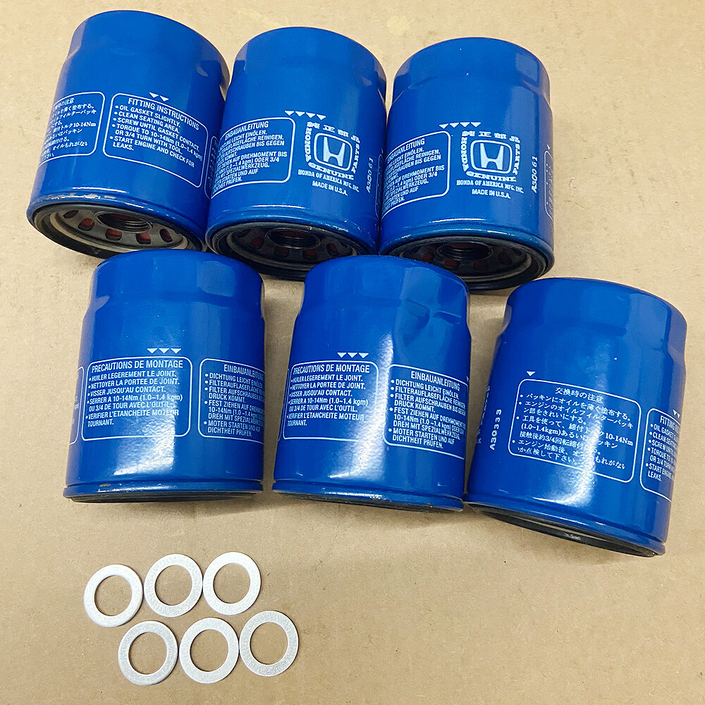 This listing offers a set of 6 pieces of **15400-PLM-A02** oil filters, each accompanied by a **94109-14000 washer** (6 washers included). All **15400-PLM-A02** filters are brand new and have never been used; however, due to various factors, they may show some cosmetic imperfections such as dents, scratches, discoloration, or damaged packaging. Despite these external flaws, each filter is 100% functional and in unused condition, ensuring optimal performance for your needs. _We carefully inspect, clean, and repackage each item before shipment to ensure it arrives in the best possible condition._ **Please note that the actual product shipped may vary from the images shown and will be sent at random.** The part, you are purchasing contains Genuine OEM Factory Original parts purchase from an authorized Genuine OEM parts reseller. The part is not "like OEM", it is the Genuine OEM parts sold by the vehicle manufacturer. Please contact us and provide your VIN before purchase if you are not sure about fitment. Every effort is made to ensure information is accurate, however, some vehicles are HEAVILY reliant on production dates, models, & trim levels, a detail can be missed. With your VIN, application will be verified with our factory-provided catalogs for US market vehicles. All parts in our listings are for US models only! We cannot determine fitment on non-US models. BUYERS ARE ULTIMATELY RESPONSIBLE FOR VERIFYING THE PART PURCHASED IS CORRECT FOR THEIR VEHICLE WITH A FACTORY CATALOG IF NO VIN IS PROVIDED WITH THEIR ORDER.