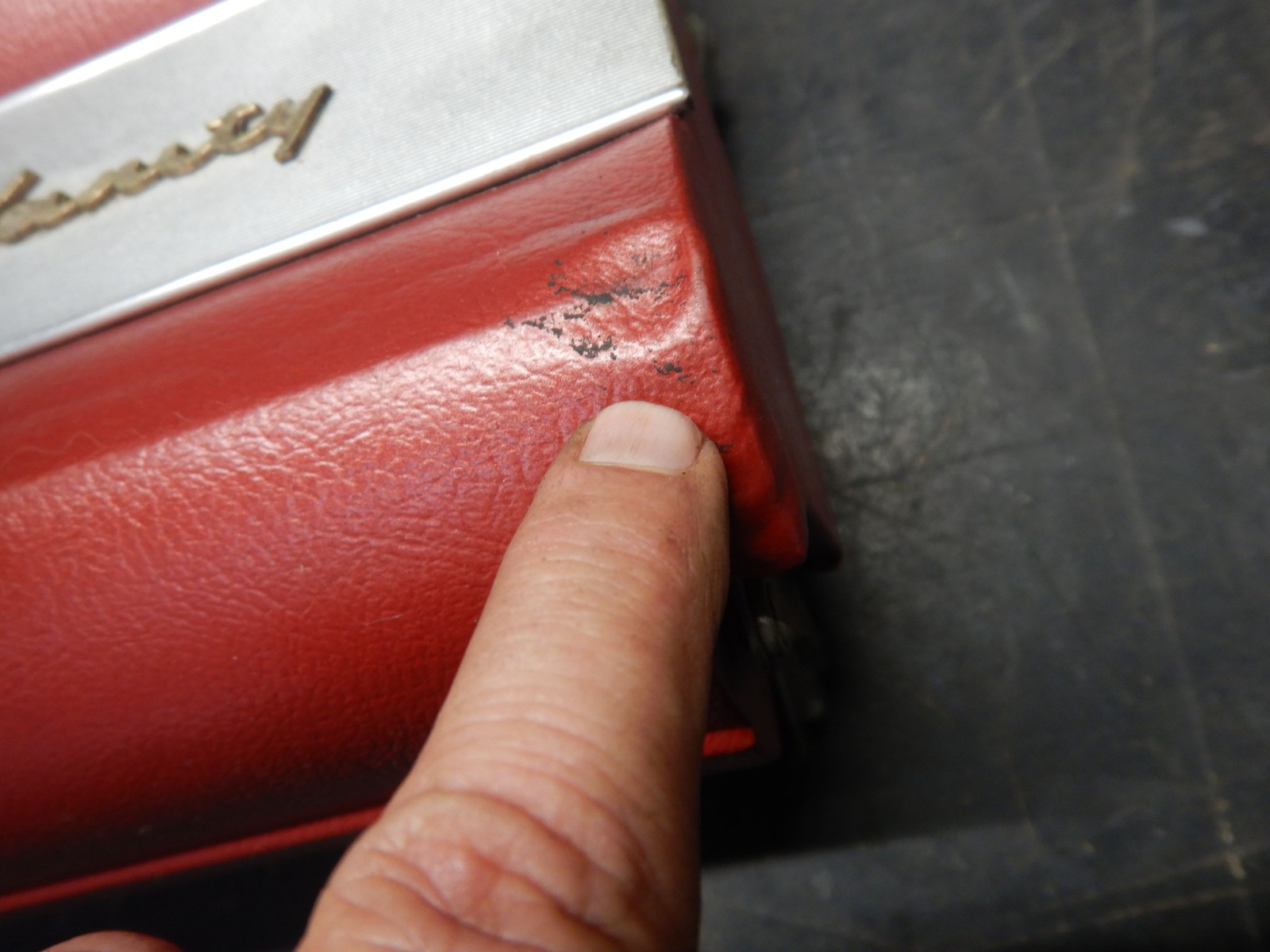 You are looking at the rare Glove Box Vanity option from a 1963 Studebaker Lark. Correct for 1963-64 Lark and Wagonaire. Color is red. There is one impression on the bottom right corner (pictured). The trim had a few dings. Hinges and latches all work good. The mirror is 80%. On a scale of 1 to 10, the appearance is a 7.