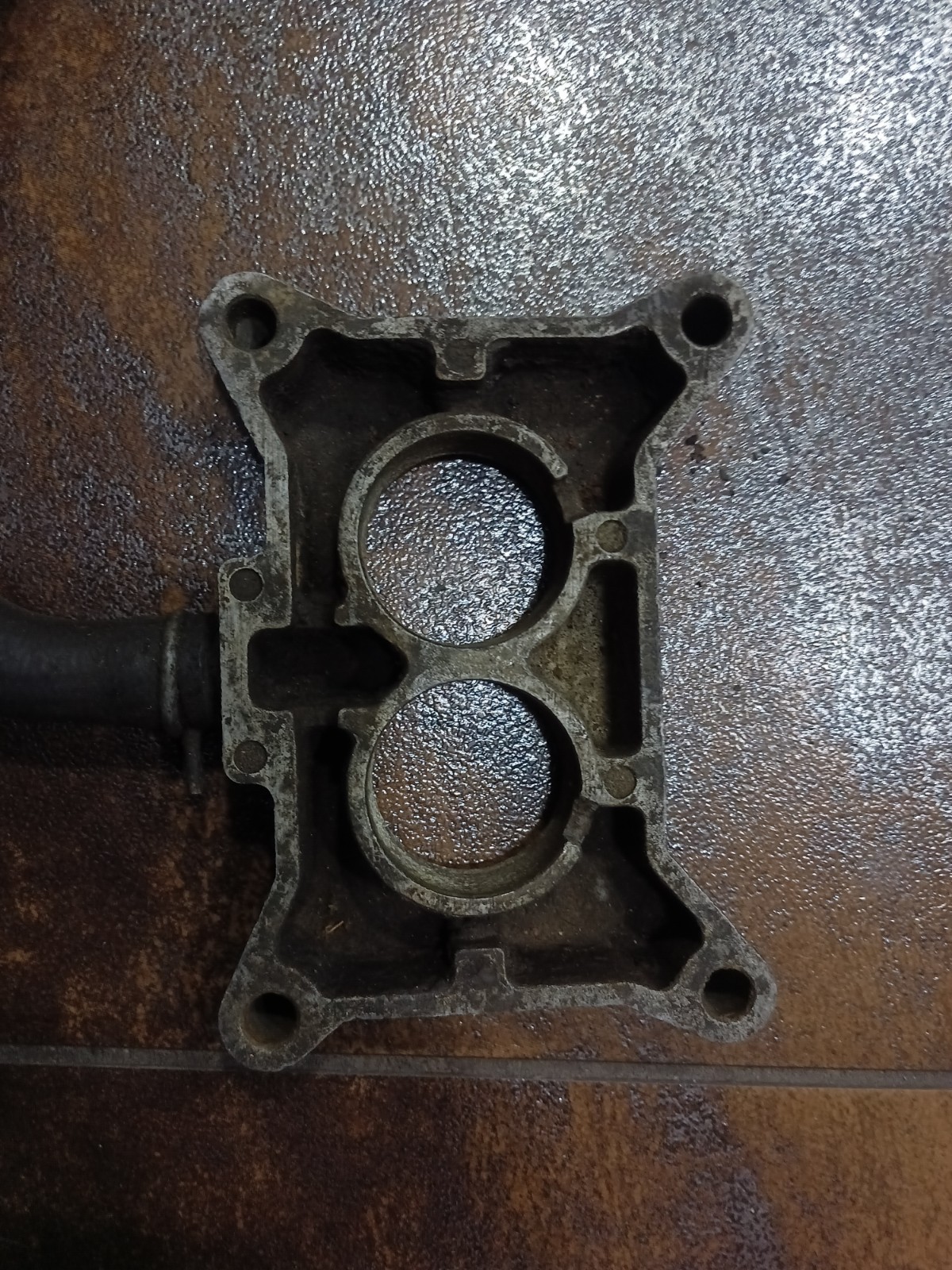 Up for sale is an original 65 66 67 mustang 2v 289 302 carburetor spacer. The hose is hard and should be replaced