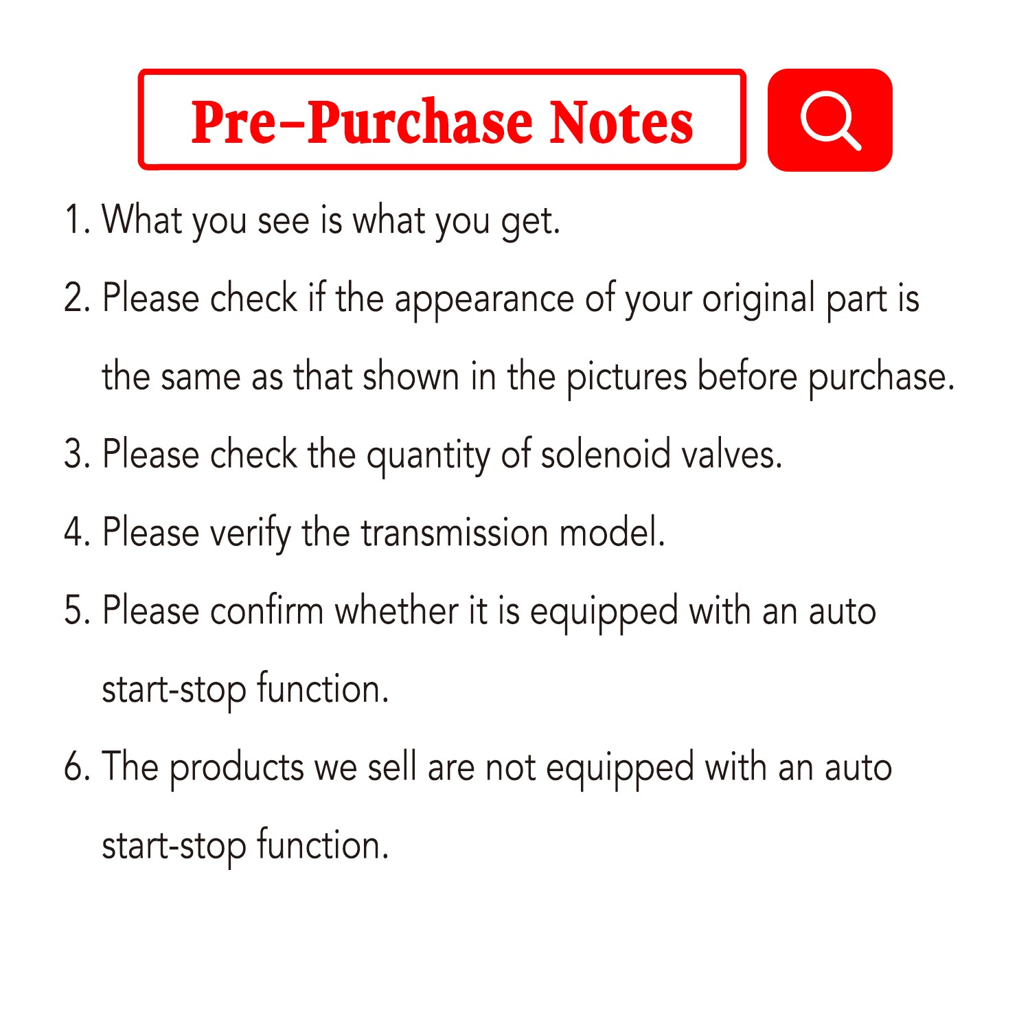 Items Description Please kindly note: This item is Refurbished Parts, not Brand New. To ensure compatibility, we recommend providing your : **①VIN, ②OE Number, ③The clear photo of your original part** If possible. Auto parts are highly complex, and this information helps us confirm the correct fit. Thank you so much!What you see in the pictures is exactly what you will receive. ✅About Us & Products: Every valve body is fully tested to meet specifications. ✅ Programming Requirement: Each valve body is completely disassembled, cleaned, updated with high-quality original parts, and fully tested with pressure calibration to match original specifications and performance. ✅ Wide Matching: Designed to adapt to various vehicle models and years, suitable for multiple vehicle models, ensuring perfect matching of your transmission system ✅ Precise control: Ensuring smooth and accurate shifting, ensuring precise and smooth shifting of the gearbox, and improving driving smoothness and fuel efficiency ✅ Stable performance: The transmission battery valve body optimizes oil flow and pressure control, effectively reducing common problems such as gear shift delay and slip, ensuring stable and reliable performance ✅ Compatibility: The transmission valve body needs to be programmed before installation and use. ✅ Installation: Searching Related Installation Video On The Internet Will Be Recommended And Always Wear Eye Protection And Start With Installation Tools ✅ Note: Please confirm the item if it matches your car before you purchase. If You Buy a Wrong Type For Your Vehicle, Please Not Damage The Label And Barcode, Return It In The Original Package. If You Have Installed, Please Clean It And Put Into The Resellable Original package. THANKS ! ✅ Fitment: 2015-2025 Toyota Tacoma ✅ Package Includes: 1x AC60F, AC60E Valve Body(show as pictures) Delivery detailsPaymentTerms of salesAbout usContact us Delivery details Usually, Item will be shipped within 1 working day after full payment is received. Normally, you will receive the item in 5-7 days. Please contact us if you don’t receive the items after 8 working days after the payment. We ship the item to the given address in your order. Please make sure the address in your order is correct. Any non-received item caused by invalid address that left in your order is not in our full refund or replacement policy. Payment We accept multi way of payment, such as PayPal, Apple pay, credit card etc. After you place the order, please finish the payment a.s.a.p. Terms of sales The buyer has 30 days to return the item for refund or replacement. The shipping fees will be on seller or buyer according to the reasons of the returned purchase. The returned product must be under resalable condition and with original package. About us We are a professional worldwide wholesale auto parts company. We specialize in auto accessories for cars, trucks, motorcycles, ATV, UTV, ships, speedboats, furniture and gardening (lawn mowers, fellers, chainsaws, generators, car washers, etc.)Our professional team dedicated to provide high quality products for the most competitive prices and excellent service!