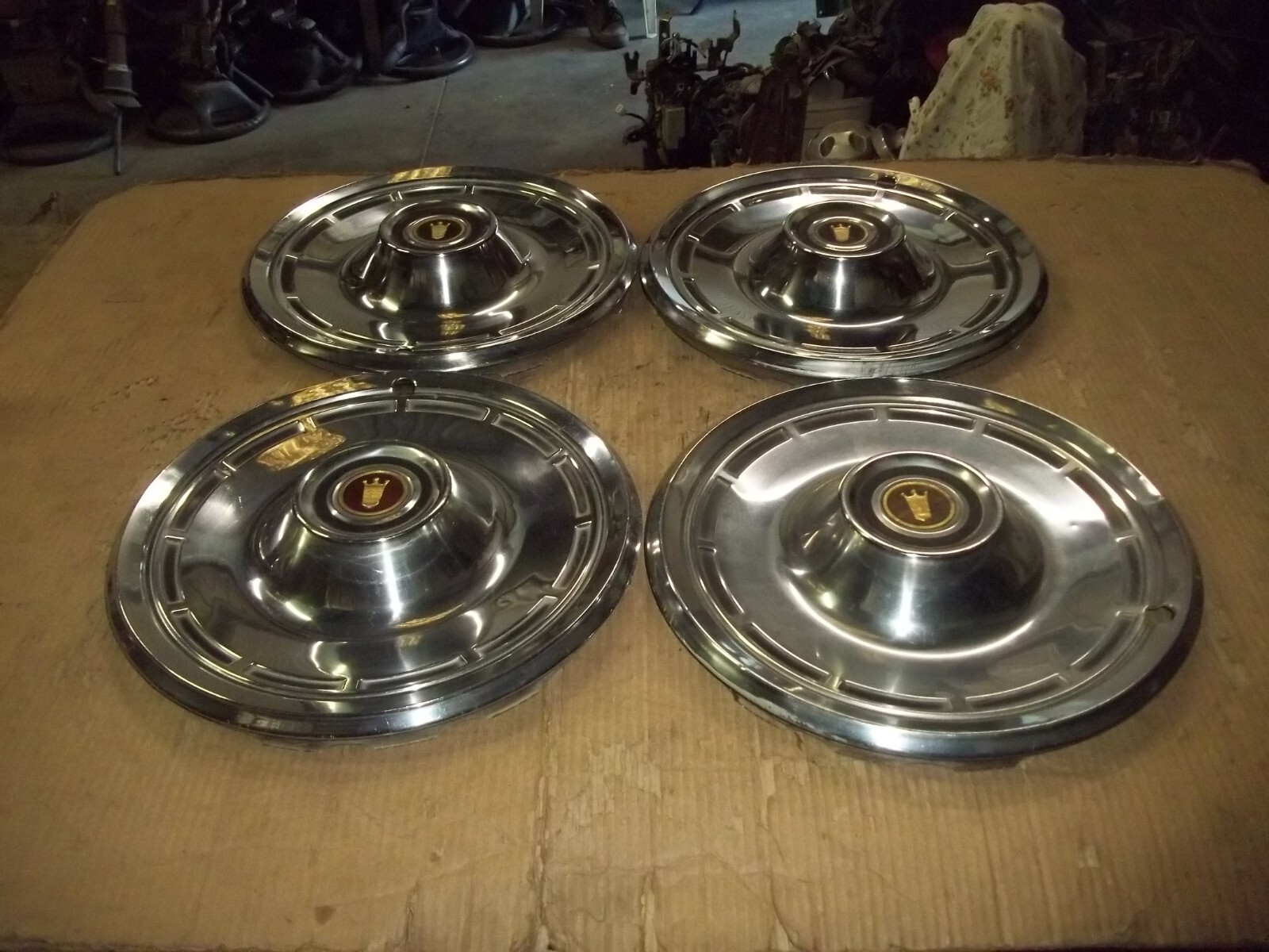 A set of FOUR (4) 75-79 Dodge Passenger Car, Charger and Aspen 14" factory full wheel covers.Match center emblem style.This is a VERY used set with MANY large dings / dents and deep scratches / scrapes.These dings / dents and scratches / scrapes will be noticeable from even a short distance.Edges and flat sections dinged and dented.The original finish is VERY faded and worn due to time.Oxidation and corrosion.Staining that does not polish off.Center emblems lost all color and pitted.Paint scratched and worn.Shine or brightness different shades.Slightly bent out of round when laid flat but attach to wheels as designed.Poor driver car quality.On a scale from 1 to 10, these rate a "5" in condition.Buyer to pay shipping with a flat rate of $20 within the continental U.S..Elsewhere there are additional charges.Accept most methods of payment.California buyer to pay state sales tax.