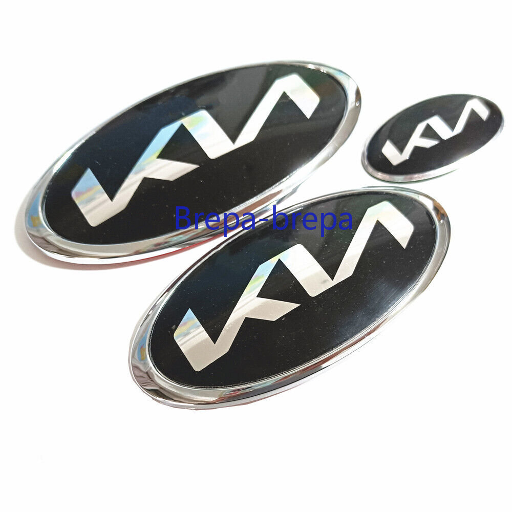 **7X B/Silver KN Front Trunk Steering Wheel Center Badge For K5 FORTE OPTIMA** Size: 13.0\*6.5cm; 11.5\*5.7CM; 6\*3.3CM; 5.6cm; **Before you buy it, we hope you could measure and confirm your original emblem size firstly, thks.** Comes with adhesive back for stick on. Package: 7 PCS (Front + Rear + Steering + wheel center sticker) Made of Aircraft ABS Never fade ,has water proof, oil proof and washing liquid proof functions Easy to install, stylish car badge will make your car more charming