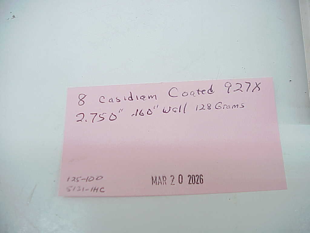 \\*\\*\\*\*\*\*\*\*\*\*\*\*\*\*\*\*\*\*\*\*\*\*\*\*\*\*\*\*\*\*\*\*\*\*\*\*\*\*\*\*\*\*\*\*\*\*\*\*\* **This is 8 used****Casidiam Coated Wrist Pins 927X .160" Wall x 2.750" 128 Grams** **.** They are in very good shape. All our items sold AS-IS No returns. As with all our items, it may have dings, dents, cracks, scratches and other flaws we may have missed. Look at the pictures and you decide. **Please give us the opportunity to fix any problems you might have with a item before you post a negative or neutral feedback. We will resolve any problems immediately. We will combine shipping on these too based on total weight and size of the box or boxes. Ask for combined invoice AFTER you are done buying for the day. Do not pay individually. There is a place to request your total from seller AFTER you are done buying. READ THIS BEFORE YOU BUY. You must pay for any item you commit to buying. The same is true for Buy It Now purchases. We do not cancel orders. Please do not buy unless you plan on paying for the item. We now end up only getting around 70% of the******** ********item now. **You****** ******might need this item for your race car, stock car, drag car, off road,****** ******IMCA Wissota UMP Nascar modified, late model street stock sportsman,****** ******hobby stock, bomber or any other car.****** ******We will be gone every weekend****** ******and will not be able to answer questions until late on Sunday nights. NO****** ******RESERVE. Our**** ****inventory changes from week to week and we have many items in huge**** ****quantities as well that we re-list almost every week.**** ****Feedback PolicyPlease**** ****give us the opportunity to fix any problems before you post a negative**** ****or neutral feedback. We will resolve any problems immediately.**** ****★★★★★ SALES PLEASE READ ★★★★★**** ****ALL ITEMS SOLD ON A AS-IS WHERE-IS BASIS,**** ****ITEMS CARRY NO GUARANTEE OR WARRANTY. ALL SALES ARE FINAL. ALL ITEMS**** ****ARE LISTED TO THE BEST OF OUR ABILITY. SOMETIMES (RARELY) WE DO MISS A**** ****DEFECT. BUYER ASSUMES ANY & ALL LIABILITY FOR ANY ITEMS PURCHASED.**** ****★★★★★ **RETURN POLICY** ★★★★★**** ****ONLY**** ****ITEMS ACCEPTABLE FOR RETURN ARE ITEMS THAT HAVE BEEN DAMAGED IN**** ****SHIPPING. DAMAGED ITEMS MUST HAVE DAMAGE ITEM FORM FILLED OUT BY**** ****SHIPPING COMPANY DELIVERING ITEM (BUYER MUST GET THIS DONE) AT TIME OF**** ****DELIVERY. FORM MUST BE RETURNED WITH ITEM FOR FOLLOW UP WITH DELIVERY**** ****COMPANY. WE DO NOT DO THAT MUCH INTERNATIONAL SHIPPING, THE FEES ARE** **AWFULLY EXPENSIVE ANYWAY. PLEASE LEAVE US A 5 STAR DETAILED SELLER** **RATING TO HELP KEEP OUR SHIPPING PRICES LOW WHEN YOU LEAVE FEEDBACK.** **Alaska and Hawaii usually cost about double. International is even more** **yet. We will ship the most economical way to the Continental US and** **Parcel Post to Post Office Boxes. Some shipping services have raised** **prices to ship 15% and more are scheduled to go up also because of** **higher fuel prices, which continue to go up, increasing costs for us to** **buy the products and for buyers to get the products. The prices of** **packaging materials have gone up as well, boxing tape, packing peanuts** **and bubble wrap has also gone up considerably in the past year.** **We** **always ship the first possible day after payment is sent and sometimes** **the very same day if the payment gets here before 3:30 pm CST.** **We always provide buyers with UPS tracking numbers when we ship by Quantum View Notify.****To** **preserve our natural resources and to reduce waste we use ONLY sturdy,** **clean recycled boxes, packaging materials and or USPS Priority Mail** **Products for shipping. Please REUSE our shipping materials, if possible.** **Recycling one ton of cardboard saves over 9 cubic yards of landfill space.** **The largest single source of waste paper collected for recycling is corrugated boxes.** **Americans throw away enough wood and paper every year to heat five million homes for 200 years.** e on Sunday nights. NO RESERVE.