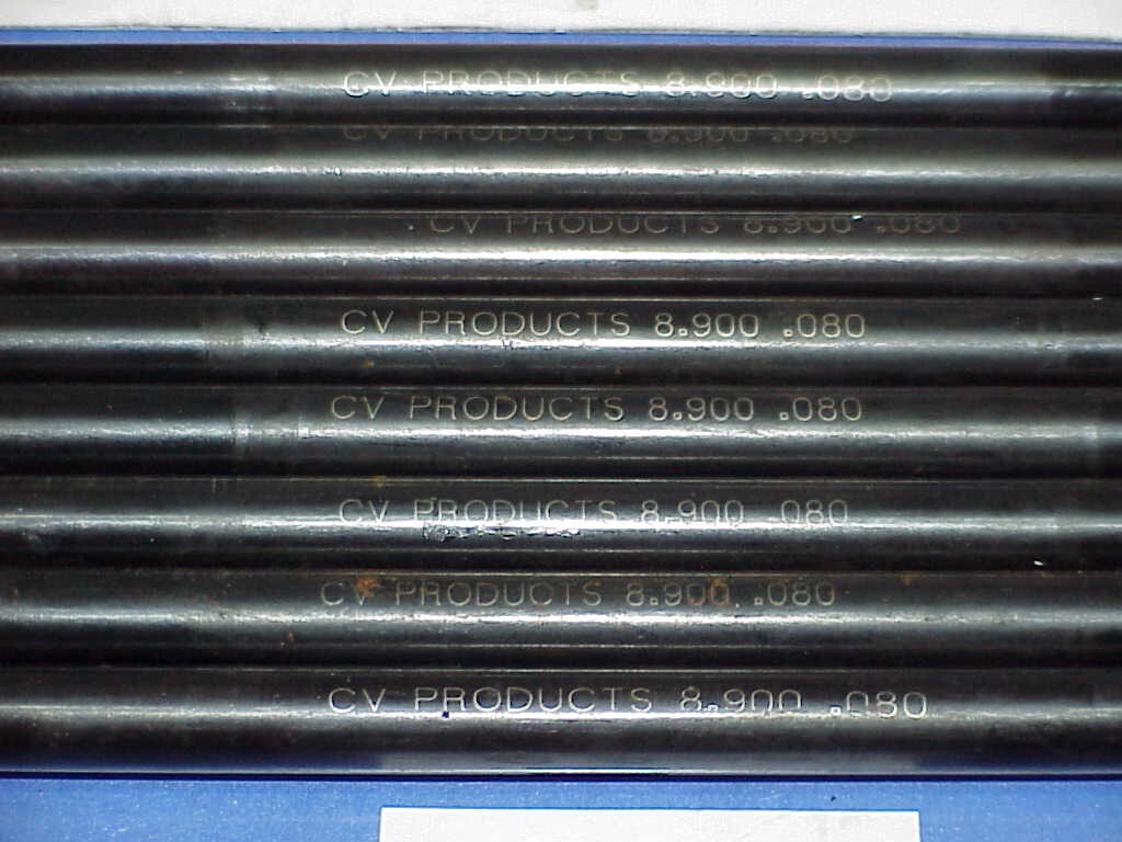 * * * \\*\\*\\*\*\*\*\*\*\*\*\*\*\*\*\*\*\*\*\*\*\*\*\*\*\*\*\*\*\*\*\*\*\*\*\*\*\*\*\*\*\*\*\*\*\*\*\*\*\* We have 8 CV Products Hardened Pushrods 8.900" x **3/8" O.D.** x 5/16" Tips from a multi-Championship NASCAR race team. WE CANNOT COMBINE ON BIG ITEMS LIKE TIRES AND WHEELS AND ON SOME BULKY ITEMS.** **I will be gone every weekend and will not be able to answer questions until late on Sunday nights. NO RESERVE. Our inventory changes from week to week and we have many items in huge quantities as well that we relist almost every week.** **Feedback Policy** **Please give us the opportunity to fix any problems before you post a negative or neutral feedback. We will resolve any problems immediately.** **Shipping Terms****PLEASE LEAVE US A 5 STAR DETAILED SELLER RATING TO HELP KEEP OUR SHIPPING PRICES LOW WHEN YOU LEAVE FEEDBACK. Alaska and Hawaii usually cost about double. International is even more yet. We will ship the most economical way to the Continental US and Parcel Post to Post Office Boxes. Some shipping services have raised prices to ship 15% and more are scheduled to go up also because of higher fuel prices, which continue to go up, increasing costs for us to buy the products and for buyers to get the products. The prices of packaging materials have gone up as well, boxing tape, packing peanuts and bubblewrap has also gone up considerably in the past year.** **We always ship the first possible day after payment is sent and sometimes the very sameday if the payment gets here before 3:30 pm CST.** **We always provide buyers with UPS tracking numbers when we ship by Quantum View Notify.****To preserve our natural resources and to reduce waste we use ONLY sturdy, clean recycled boxes, packaging materials and or USPS Priority Mail Products for shipping. Please REUSE our shipping materials, if possible.** **Recycling one ton of cardboard saves over 9 cubic yards of landfill space.** **The largest single source of waste paper collected for recycling is corrugated boxes.** **Americans throw away enough wood and paper every year to heat five million homes for 200 years.**