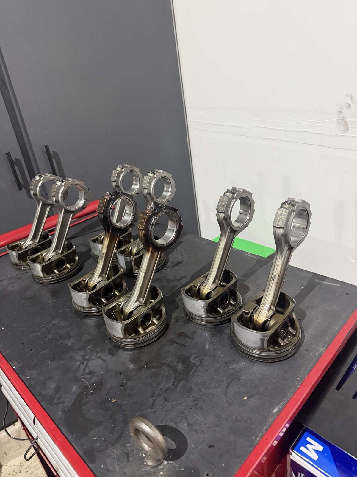 As is. Only 2 rods are messed up from what it looks like. The GM 2008 Corvette Z06 LS7 427 7.0L Titanium Connecting Rods and Pistons are genuine OEM parts made by Chevrolet in the United States. These direct replacement connecting rods are crafted from durable titanium, ensuring high quality and performance for your Corvette engine. With interchange part numbers 12631873 and 12631872, these connecting rods are designed specifically for the Corvette model, providing a perfect fit for a seamless upgrade. Upgrade your engine with these top-of-the-line connecting rods and pistons to enhance power and efficiency.