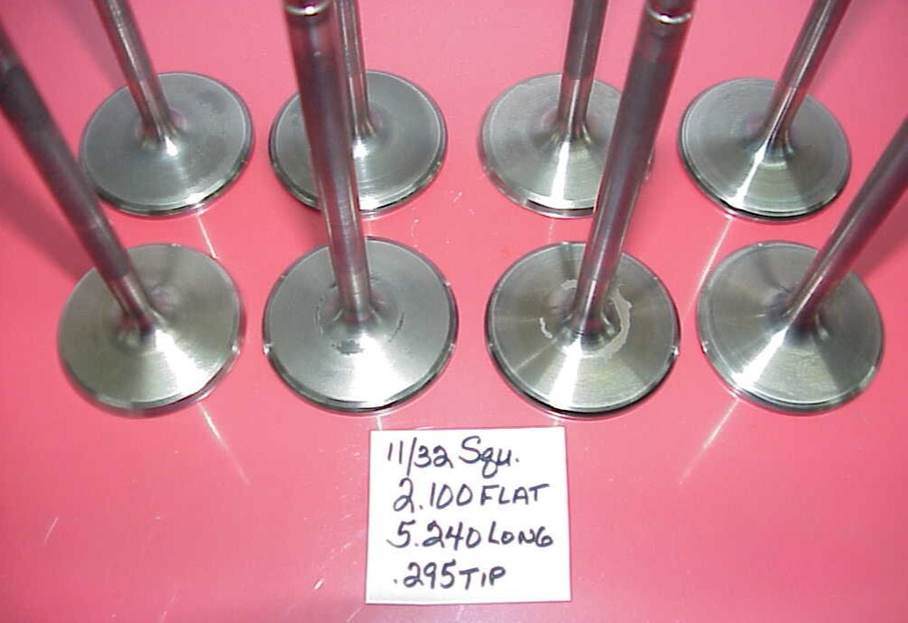 * * * \\*\\*\\*\*\*\*\*\*\*\*\*\*\*\*\*\*\*\*\*\*\*\*\*\*\*\*\*\*\*\*\*\*\*\*\*\*\*\*\*\*\*\*\*\*\*\*\*\*\* We have **8 Titanium Intake Valves** **Dimensions are close to: 11/32" Square Groove Stem - 2.100" Flat Head - 5.240" Long - .295" Hardened Tip** **I don't know if the stems are hollow or solid.** **“These are USED valves, not new valves, used valves that have been in a racing engine under racing conditions. Yes, they have wear, it may be excessive to you, so look at the pictures before you decide to buy them. Sold AS-IS, NO RETURNS. WE CANNOT COMBINE ON BIG ITEMS LIKE TIRES AND WHEELS AND ON SOME BULKY ITEMS.** I will be gone every weekend and will not be able to answer questions until late on Sunday nights. NO RESERVE. Our inventory changes from week to week and we have many items in huge quantities as well that we relist almost every week.** **Feedback Policy** **Please give us the opportunity to fix any problems before you post a negative or neutral feedback. Alaska and Hawaii usually cost about double. International is even more yet. We will ship the most economical way to the Continental US and Parcel Post to Post Office Boxes. Some shipping services have raised prices to ship 15% and more are scheduled to go up also because of higher fuel prices, which continue to go up, increasing costs for us to buy the products and for buyers to get the products. The prices of packaging materials have gone up as well, boxing tape, packing peanuts and bubblewrap has also gone up considerably in the past year.** **We always ship the first possible day after payment is sent and sometimes the very sameday if the payment gets here before 3:30 pm CST.** **We always provide buyers with UPS tracking numbers when we ship by Quantum View Notify.****To preserve our natural resources and to reduce waste we use ONLY sturdy, clean recycled boxes, packaging materials and or USPS Priority Mail Products for shipping. Please REUSE our shipping materials, if possible.** **Recycling one ton of cardboard saves over 9 cubic yards of landfill space.** **The largest single source of waste paper collected for recycling is corrugated boxes.** **Americans throw away enough wood and paper every year to heat five million homes for 200 years.**