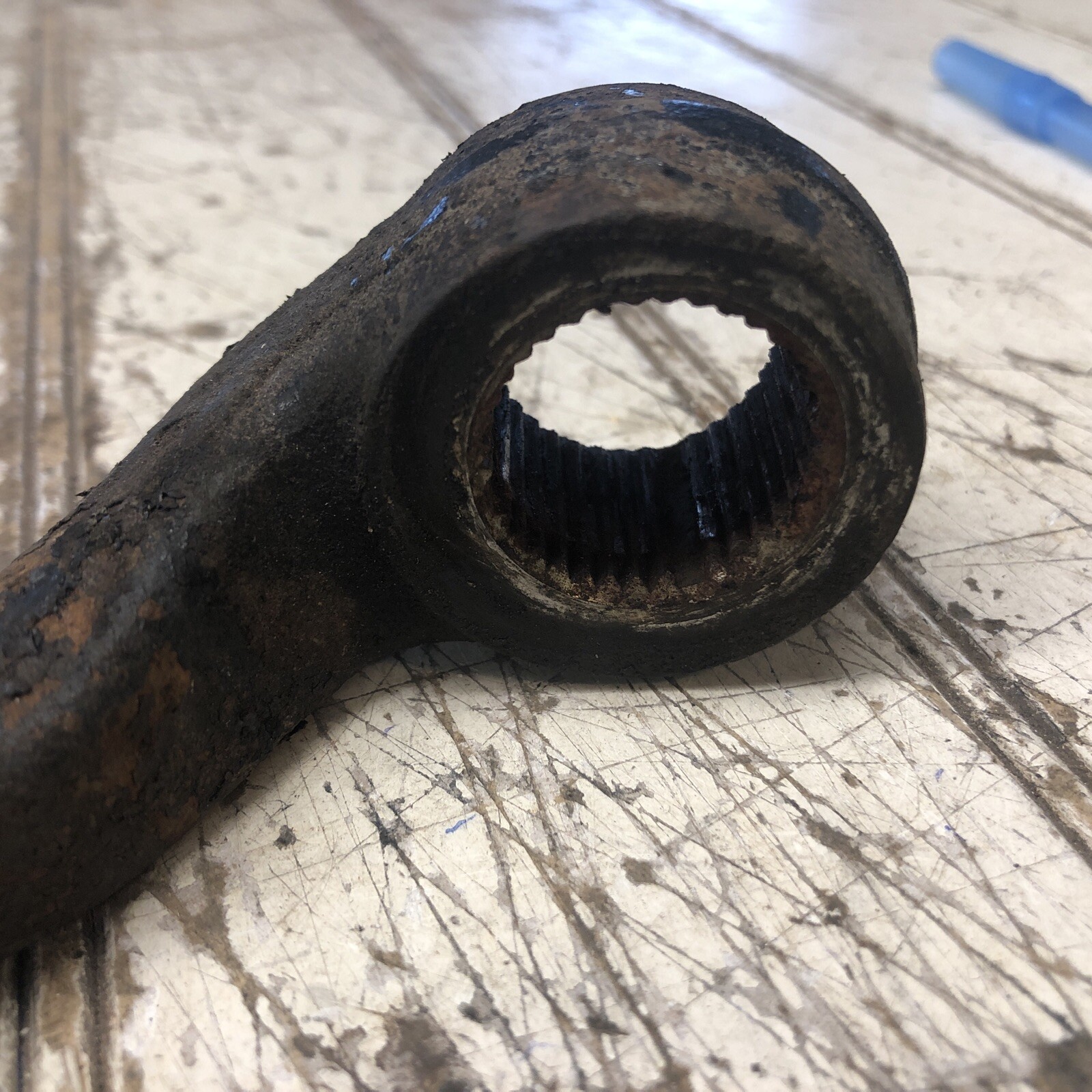 81 82 83 84 85 86 Datsun / Nissan 720 Pickup Truck Manual Steering Pitman Arm Used Nissan. Shows some wear from age / use.