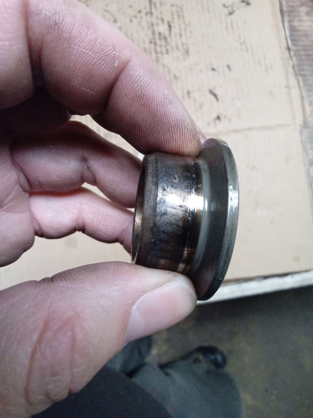 DESCRIPTION: 1986 porsche M44/40 944 2.5 left balance shaft seal collar DAMAGES: Light polish before use will help the new seal seal Dirty USED PLEASE SEE ALL PHOTOS Loc: ZJL-2A52 Lt# CH1