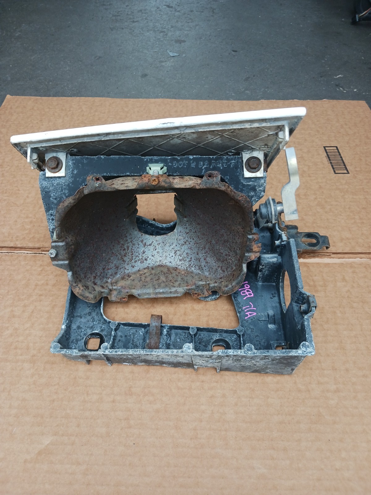 Due to current conditions we are shipping three times a week only... Monday's, Wednesday's and Friday's. There are also delays on the shipping companies behalf 82-90 Firebird RH Passenger Side Headlight Frame Assembly Trans am Pop Up head lights In Fair condition with scratches, fading, paint peeling, lots of paint overspray and some rust.
