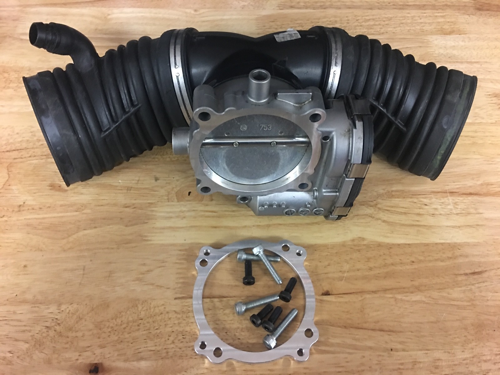 82mm m113k adapter kit plate for e55 cls55 cl55 g55 s55 sl55 with Y pipe! throttle body please do your research before buying no returns as is no warranty USED 82mm throttle mercedes body adapter kit including Y pipe. This kit includes: Used 82mm mercedes benz throttle body Adapter plate Hardware oem y pipe Installation is simple with it being a bolt on plate. Just use a flap wheel sander to port your stock snout to 82mm. Tuningkitto increase capacity55AMGenginesupercharger. Replace your74mmthrottleona larger82mmwith adapter Electrical connector installed bolt it (plug and play) **Increases of 30-35 hp and torque to 40-60 Nm.** Increasedthrottleallows the enginegreatermixture, thereby increasing the maximumpower and torque. stock throttlediameter74.5mm. We proposethrottlesettinga diameter of 82mm, which has a largecapacity.This meansthatthe enginegetslongerworking mixture, thereby increasingpower and torque. please do your research before buying no returns as is no warranty