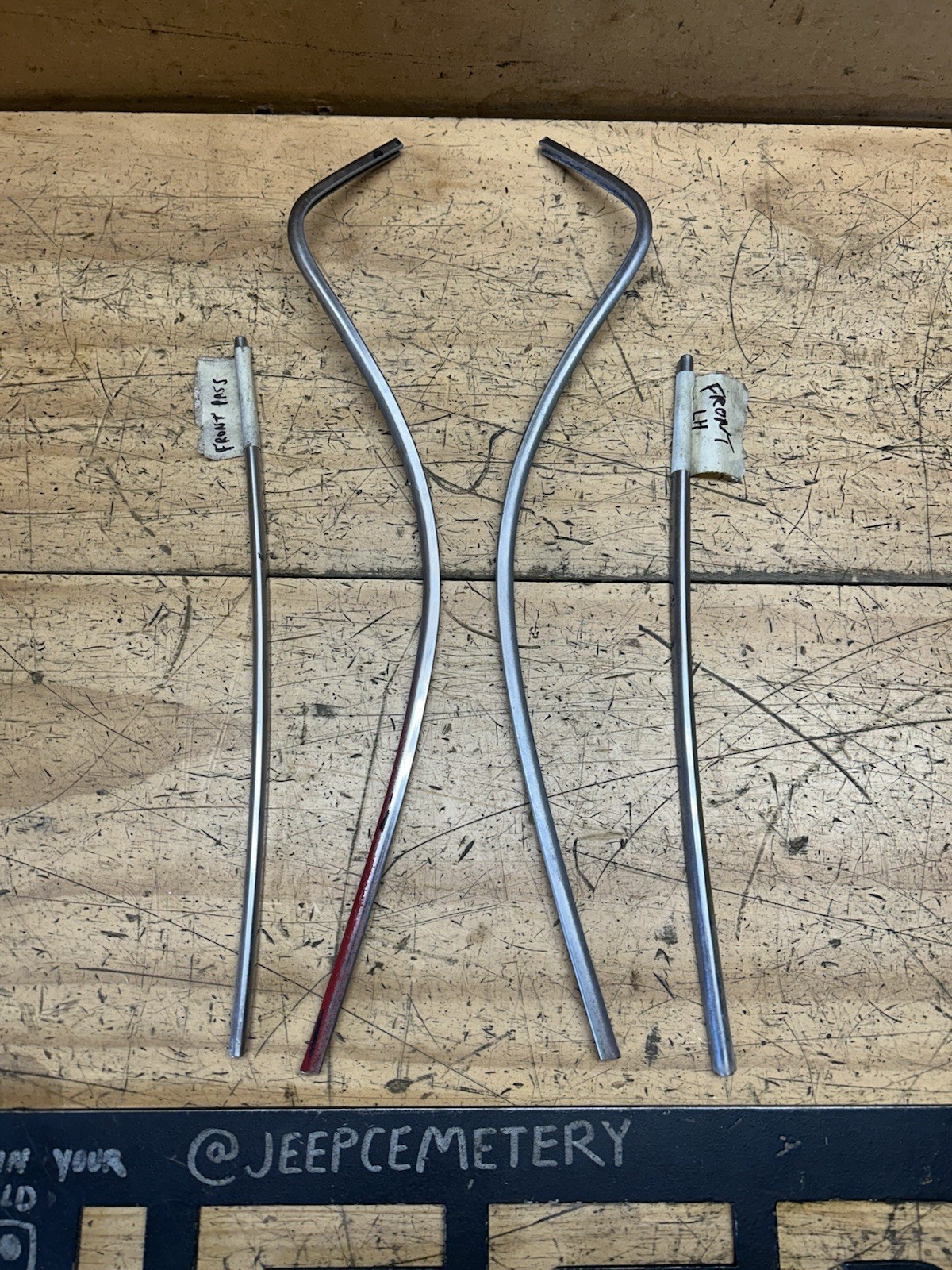 84-96 Jeep Cherokee XJ Exterior Chrome Laredo Trim Pieces OEM PARTS! FREE SHIPPING! OEM chrome exterior door trim, sold as a sit, fits 84-96 Jeep Cherokee XJ’s (4 door models) These clip-in style trim pieces were commonly found on the doors of higher trim level XJ’s, such as laredo, pioneer, etc. Sold as a set of 4. Chrome finish on all pieces is presentable, but not perfect. They would clean up nice with a light polish job. One piece has red paint overspray on it (see photos) Good condition OEM parts, ready for install!