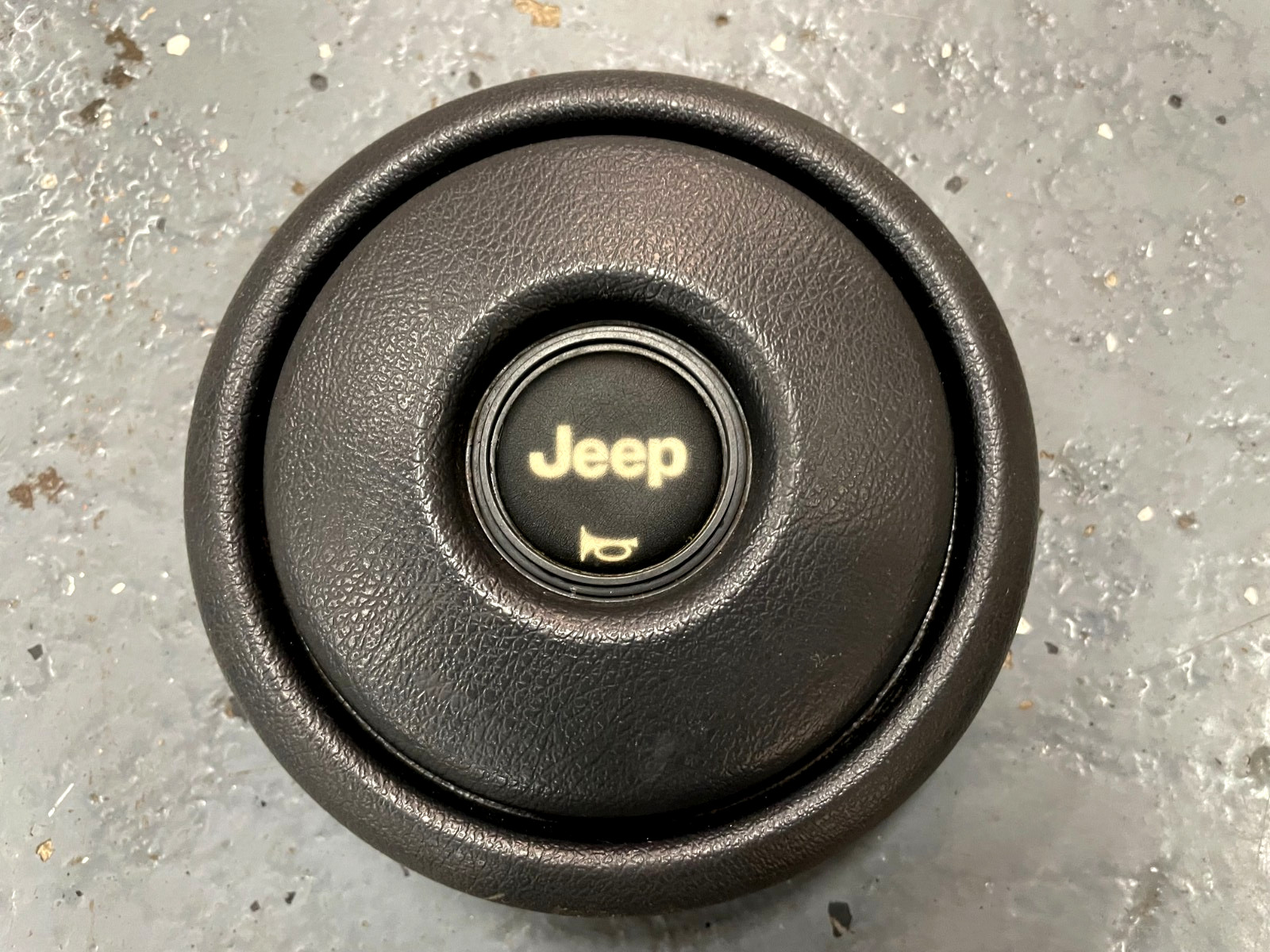HERE FOR YOUR CONSIDERATION IS A FACTORY HORN BUTTON/PAD FROM A 1989 JEEP CHEROKEE XJ. IT IS IN EXCELLENT CONDITION WITH NO CRACKING, SCRATCHES OR WARPING, IT IS BLACK IN COLOR IT IS VERY CLEAN AND ALL OF THE MOUNTING TABS ARE INTACT.