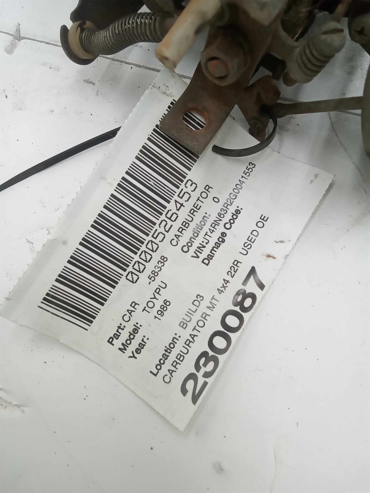 85-87 TOYOTA PICKUP Carburetor 2WD 1/2 Ton Manual Transmission USED OEM 35310