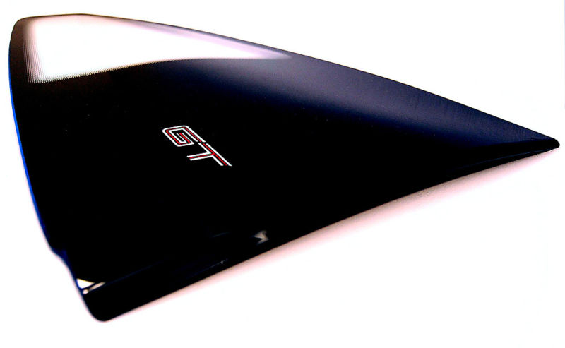 **New reproduction solid acrylic Fiero GT quarter window (passenger side) for 1986, 1987, and 1988 models. Complete with screen printed dot-matrix borders, 2-color (red and silver) printed GT lettering, correct molded curves, and rolled and polished front edge. The highest quality window you can buy. Hand cut, hand polished and made in the U.S.A. Included is the OEM (original) double-sided tape for easy installation.**