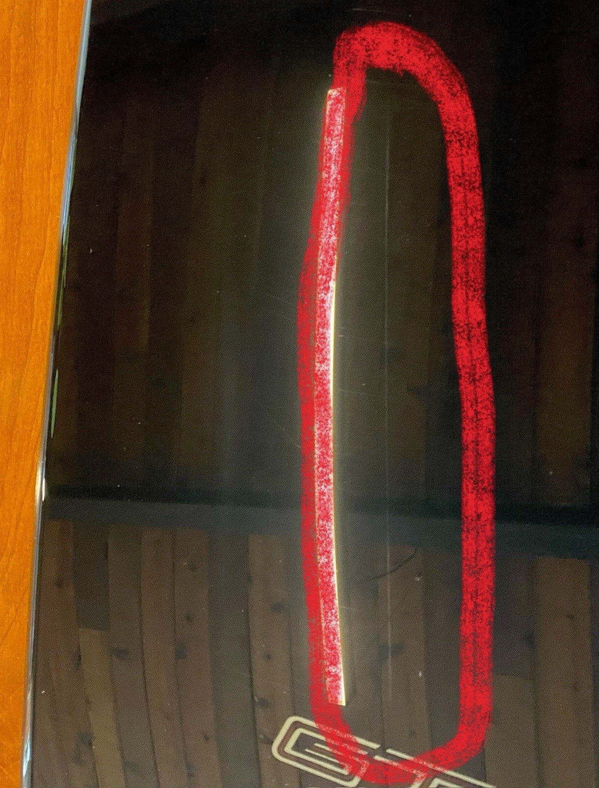 **Blemished new reproduction solid acrylic Fiero GT tinted quarter window (driver side) for 1986, 1987, and 1988 models. Complete with screen printed dot-matrix borders, 2-color (red and silver) printed GT lettering, correct molded curves, and rolled and polished front edge. This window has a minor imperfection in the black printed area (see pics), so it is being sold at a reduced price. Included is the OEM (original) double-sided tape for easy installation.**