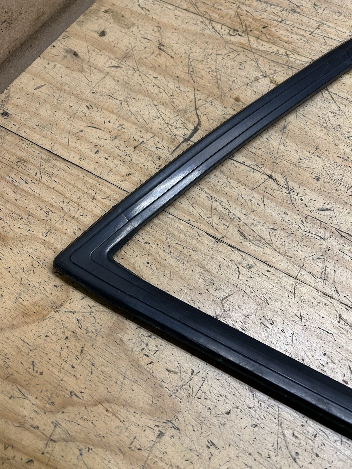 86-92 Jeep Comanche OEM Rear Window Rubber Gasket Seal Trim Solid or Slider OEM PART! FREE SHIPPING! OEM rubber rear window outer seal/gasket fits the rear window of 86-92 Jeep Comanche MJ’s - used with either fixed 1 piece glass windows, or 3 pane slider rear windows. Gasket is in very good shape. It was carefully removed, all 4 corners are free or any rips or tears (very commonly the corners are torn) This rubber seal is technically more of an aesthetic trim piece, as the glue used to hold the window in place is what actually keeps the rear window water tight Excellent condition OEM part, ready for install!