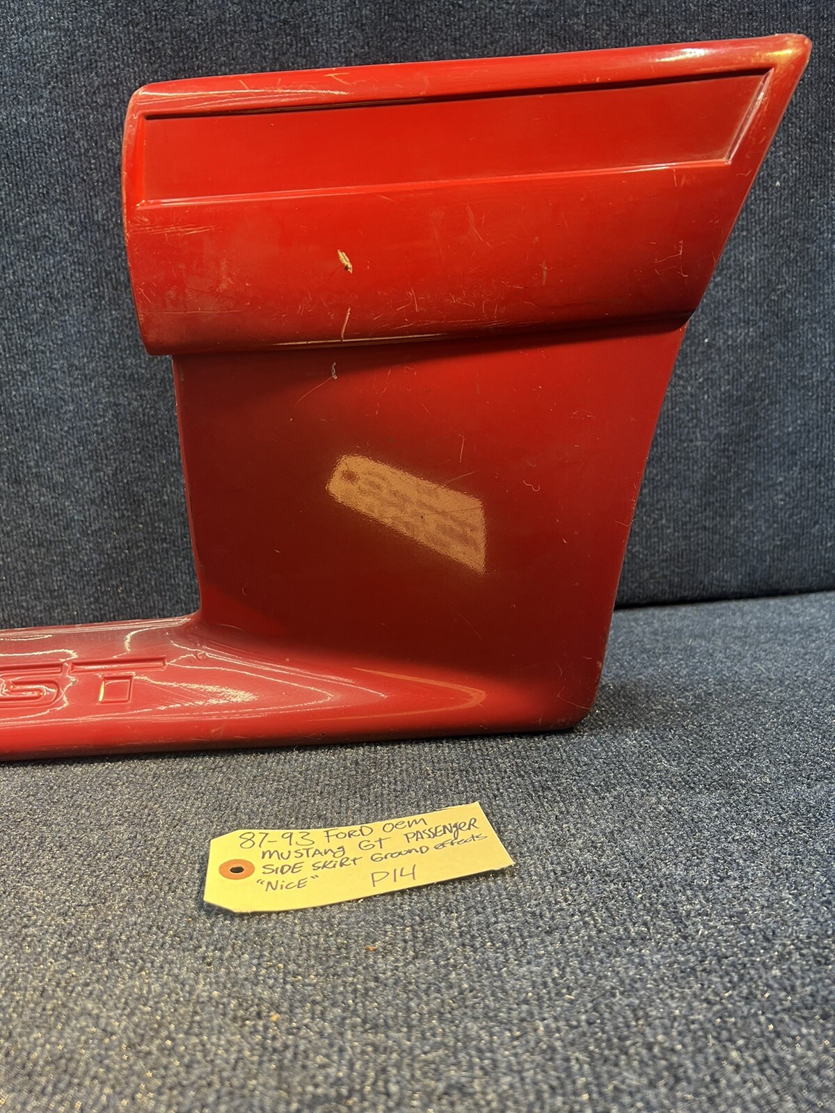 Good used passenger side skirt for any 87-93 ford mustang. No damage or issues Enhance the look of your 87-93 Ford Mustang GT with this OEM RH side skirt ground effect lower piece. Designed to fit perfectly and provide a sleek appearance, this direct replacement part is made for performance. The skirt is specifically designed for the passenger side of the vehicle, ensuring a perfect fit and easy installation. Crafted with high-quality materials, this lower piece is built to last and withstand the toughest of conditions. The Ford brand is known for its reliability and durability, making this skirt a great addition to your vehicle. Upgrade your Mustang's appearance and add a touch of style with this performance part.