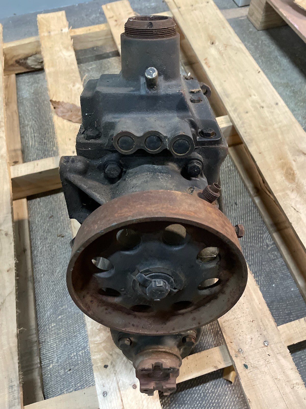 Appears to be a used 4 Speed Transmission/Transfer Case for Jeep M151. Part number on the side of the transmission is 8754675. This is used and the condition is unknown. Turns freely. Appears to be dated, 1982. Missing some of the parking brake parts and one of the yokes. The present yoke has 3 broken bolts in it. LOCAL PICK UP IN LEESPORT PENNSYLVANIA OR FREIGHT.