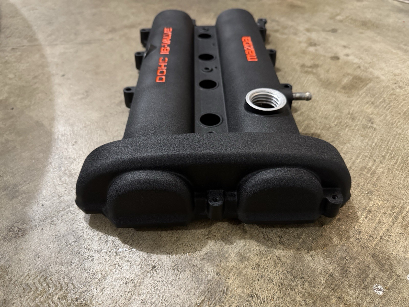 90-93 Miata valve cover wrinkle black with orange lettering really clean underside with staining on plates but doesn’t affect anything. Paint is in super good shape.