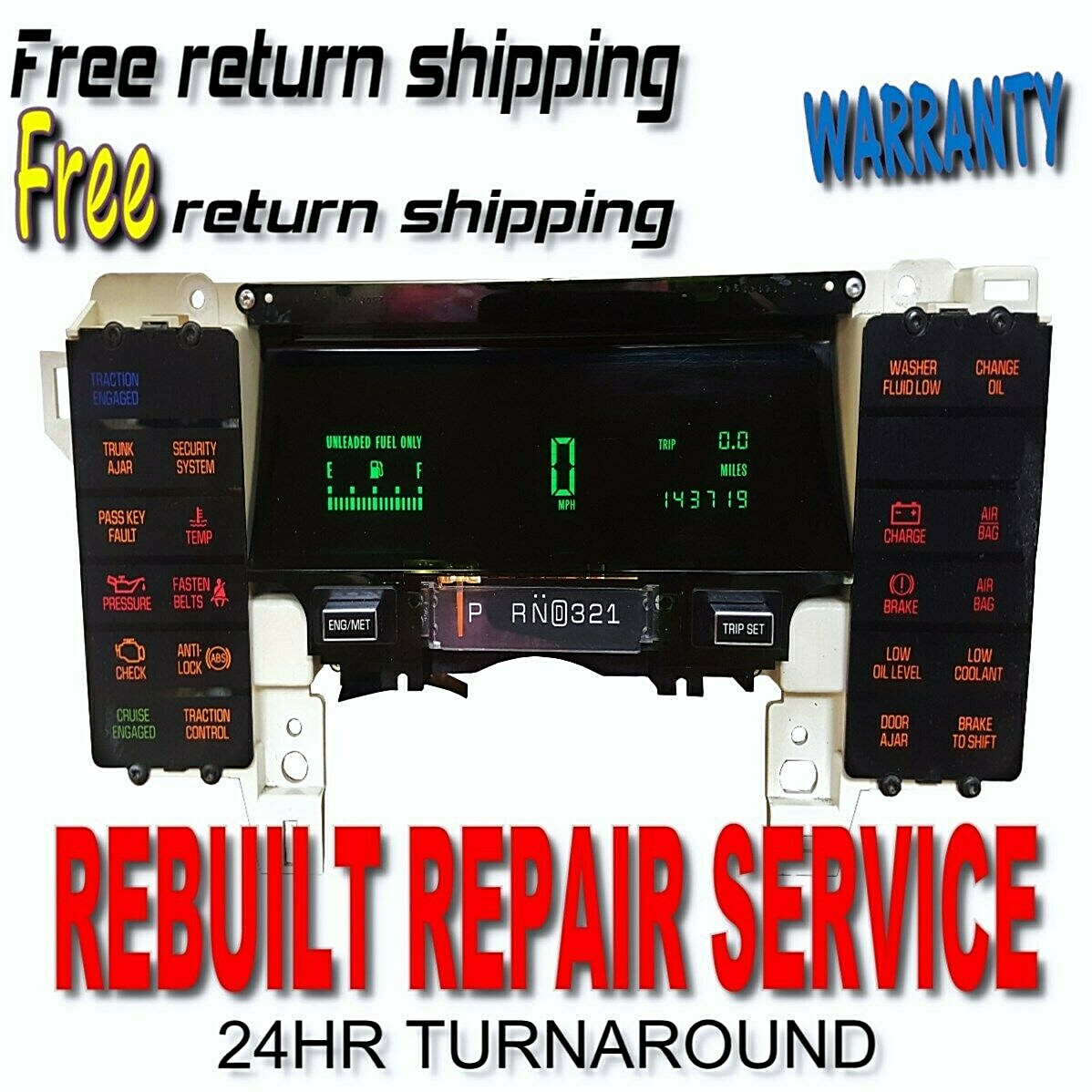 ******PLEASE BE AWARE****** You are paying for a **\*** **service** to have your cluster repaired. You will have to send/ship your cluster to us. we are not selling this cluster, please don't get confuse. # Once we have received your part # We take ****1-2 days**** to have your part repair most of the time (1)one Business day. ******PLEASE IGNORE****** the handling time. we take 24-36hrs to perform our repairs, most times even less. ## \# 1990-1996 CADILLAC FLEETWOOD / BROUGHAM Repair/Rebuilt Service REPAIR / REBUILT SERVICE - FIVE YEAR WARRANTY.... Our Service **Will repair your** instrument gauge cluster ,send it to us, will repair it for you. ****THIS REPAIR SERVICE COVERS**********THE FOLLOWING.****** ****IF YOUR INSTRUMENT CLUSTER IS CAUSING ANY OFF THE FOLLOWING ISSUES OUR SERVICE WILL FIX IT.**** 1\. Cluster not working properly 2\. Gauges not responding 3\. Screen flickers/Dim 4\. Dead or dark florescent screen back lighting 5\. Burnt back lighting bulbs **This** **is a REPAIR SERVICE of your part. We do not stock this item for sale. If** **you purchase this listing, we will be fixing YOUR unit.** **QUESTIONS YOU MAY HAVE.** **Q. **Q. How does the Repair Service work?** With a Repair Service order, you send your unit to us. We fix it and send the same one back to you. **Q. After I purchase the Repair Service, how long does the whole process take?** Repairs usually take no more then 1-2 business days once they've been received your part here at our workshop. Please ignore the handling time. we take 1-2 business days to perform our repairs, most times even less. **Q. What if my part cant be repaired?** 80% of this parts are repairable. If for some reason it cant be repaired we will inform you and issue back a refund. **Q. How do I pay to get my part repair?** After you have hit the buy it now option you can check out via Paypal. **Q. How do I package the unit.** A. As these units are so delicate due to its age they can be damaged in shipping, you will need to **pack it well**. We recommend that you use a large box (so that there are about 3 inches of extra space on each side), wrap the unit in a layer of bubble wrap and fill in the extra spaces with packing peanuts. Please include your contact details in the box when you ship it If there is any more questions or concerns please email us or call our customer service line.