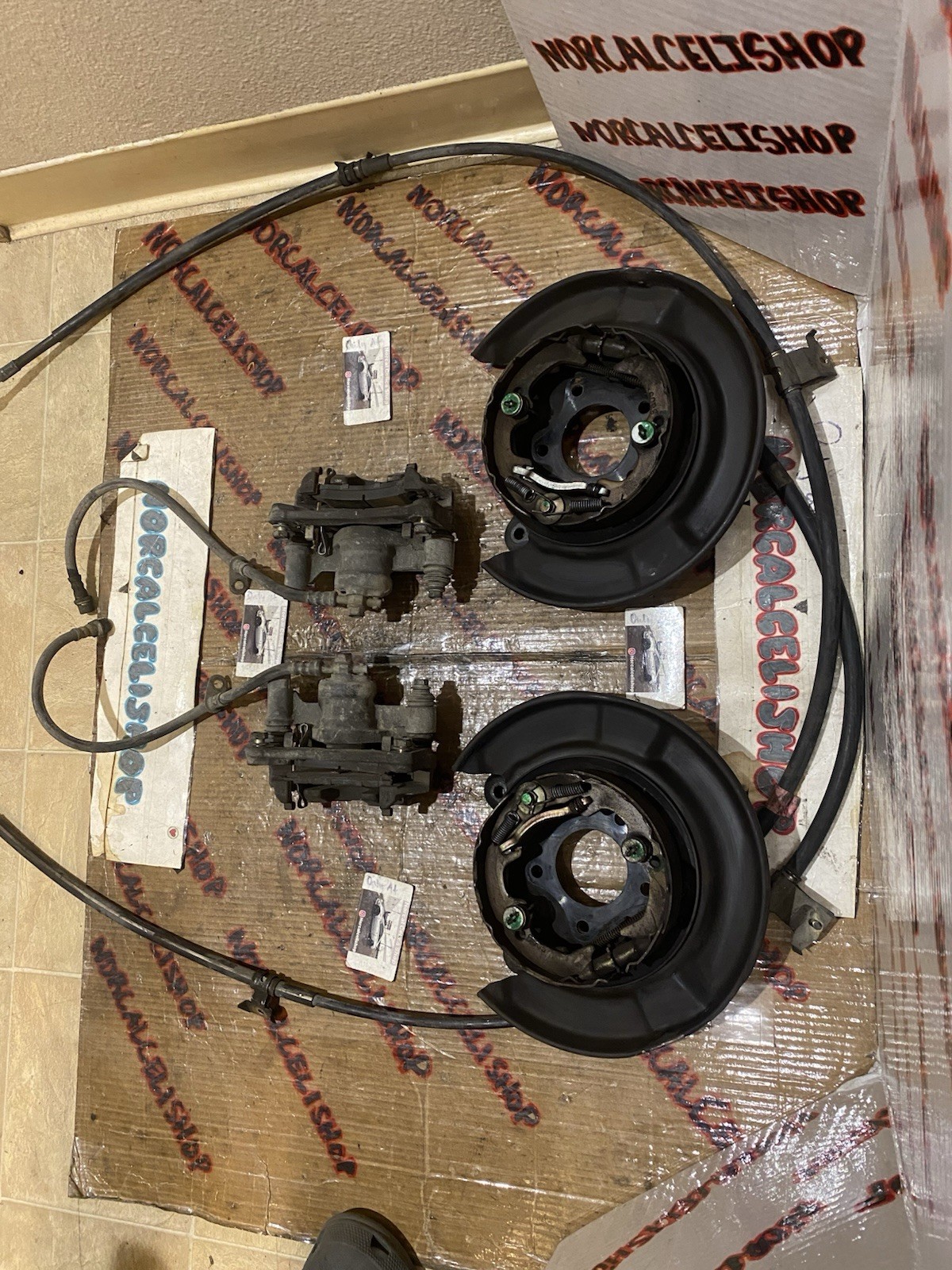 **90-99 Toyota Celica ST GT GTS 5th/6th Gen Rear Disc Brake Conversion OEM.** **Rust free from sunny California** **Good condition** **Use to convert from a bad or rusty set or to replace those ugly drums with disc brakes in order to gain that better looking stopping power!** **This set was removed from a 1993 toyota celica gt but will fit both 5th and 6th gen celicas, uses the same parts for the rear disc brakes so will fit any 90-99 Celica.** **I have also seen these be used in a rear disc conversion for 7th gen (93-97) and 8th gen (98-02) corolla/prizm.** **Also fits other Toyotas like camry 92-96 (3rd gen).** **Comes with everything you see ML2** **Any questions message me happy to help** **Follow my parts page on instagram: norcalcelishop** **Tambien habló español**