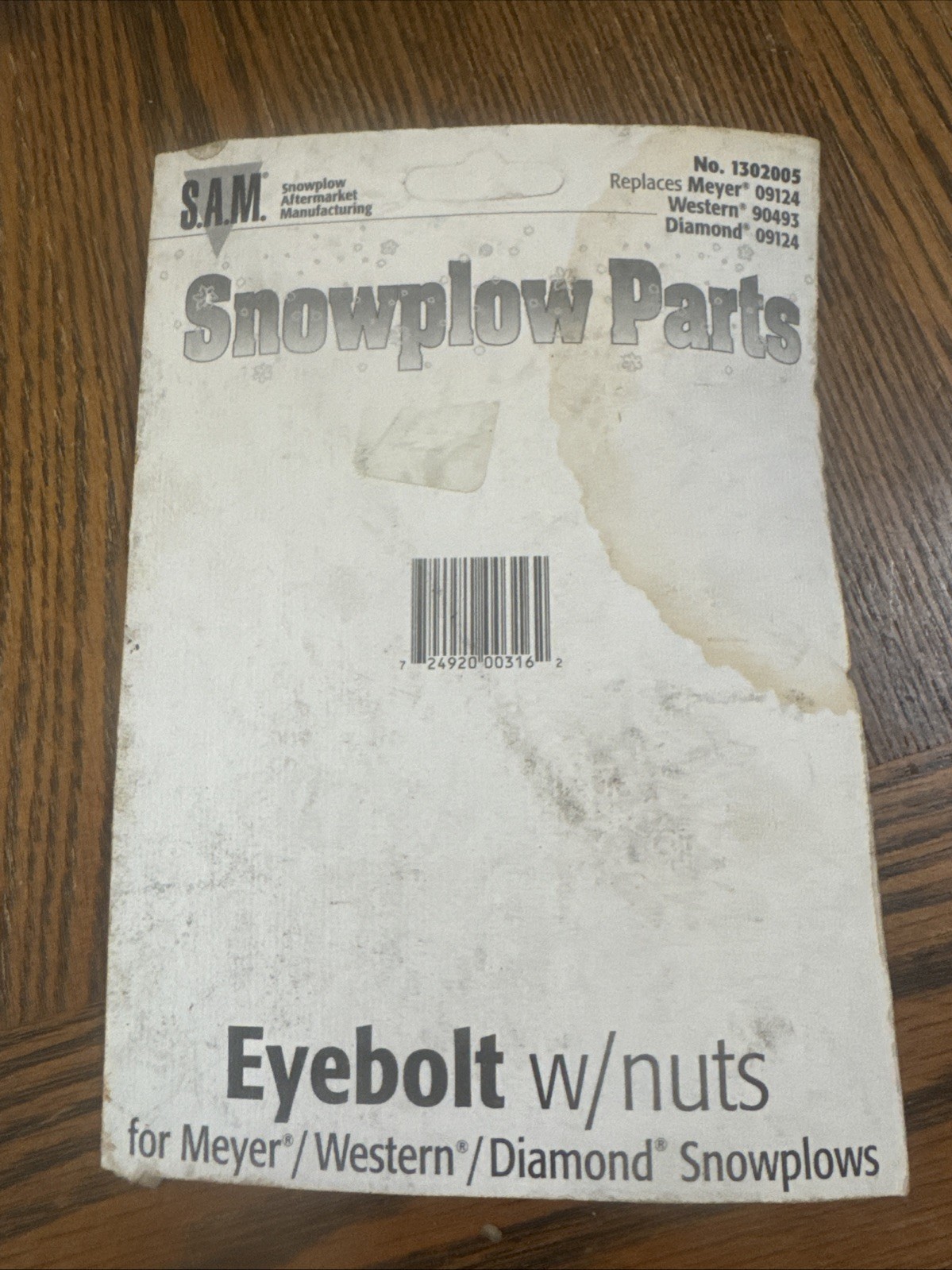 **The product is a Western 5/8-11x6 eyebolt with nuts set, specifically designed for Meyers snowplows. It includes 1 missing nut, making it a 3-piece set. The manufacturer part number is 90493KMS and it can interchange with part number 90493k. This product is essential for attaching snowplow components securely to ensure optimal performance and durability during winter weather conditions.** **This listing is preopened. Photos provided show quantity and quality. The item is sold as is.**
