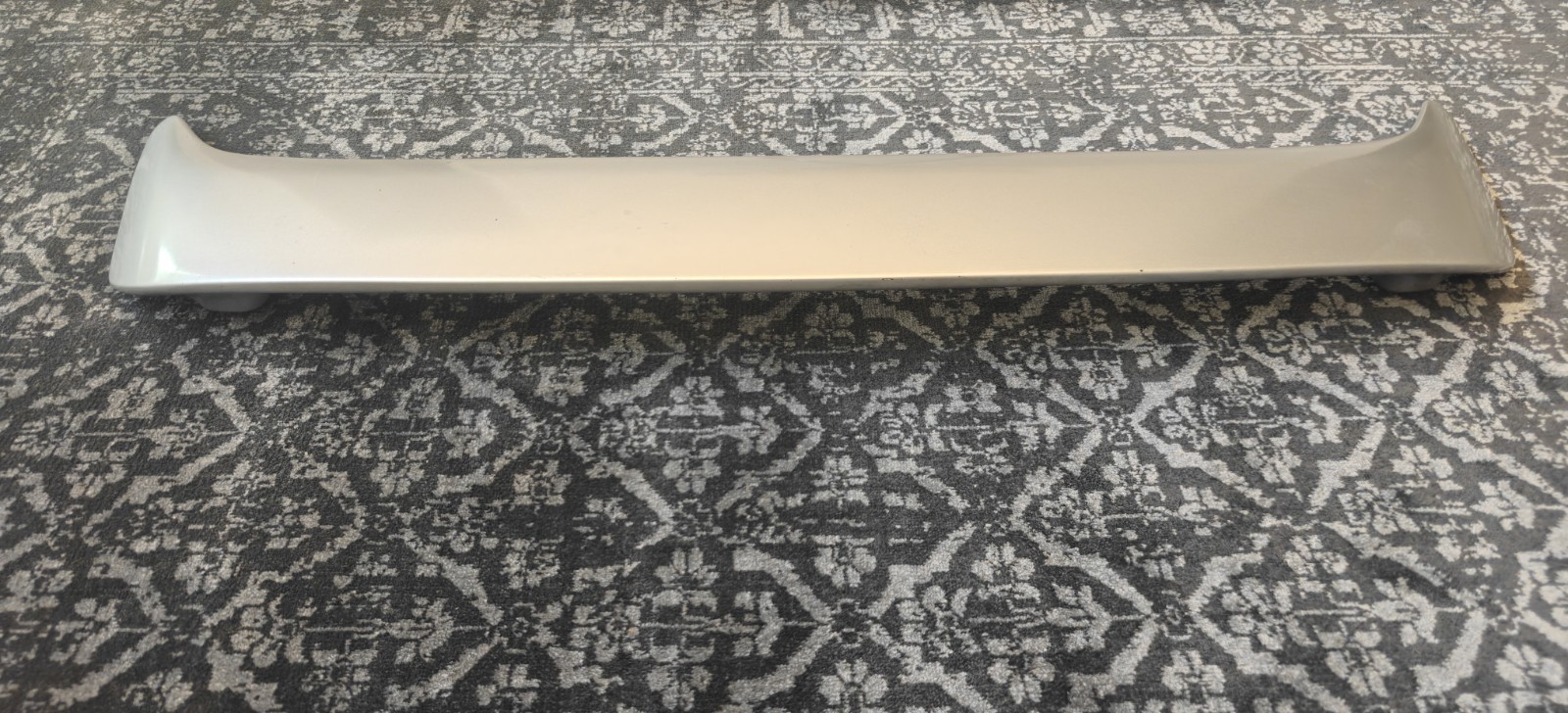 OEM rare prelude spoiler without the break light. In very good condition for its age. The paint has some imperfections and small knicks but you have to be pretty close to see it. The product is a silver rear spoiler wing designed for a 92-96 Honda Prelude trunk lid. This OEM used part is painted in silver and has a performance part status. It is specifically designed for easy installation on the rear of the vehicle, offering a universal fitment for Honda Prelude models. The spoiler adds a sleek and sporty look to the car, providing a custom touch to the exterior.