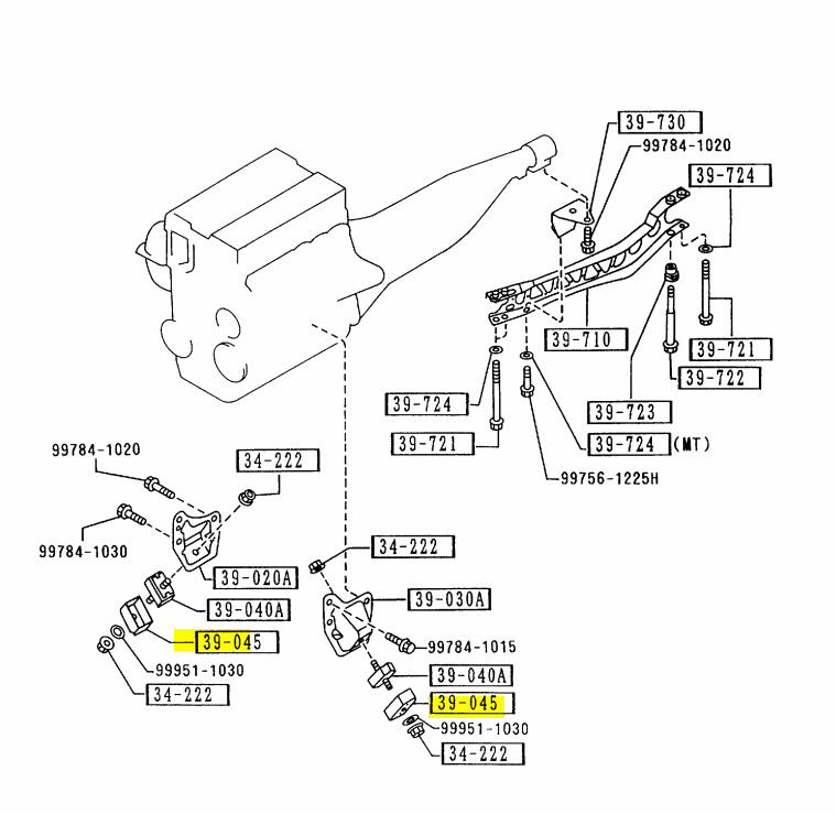94-00 Mazda Miata MX5 OEM Pair Motor Mount Bucket Casing Stopper NA01-39-041A