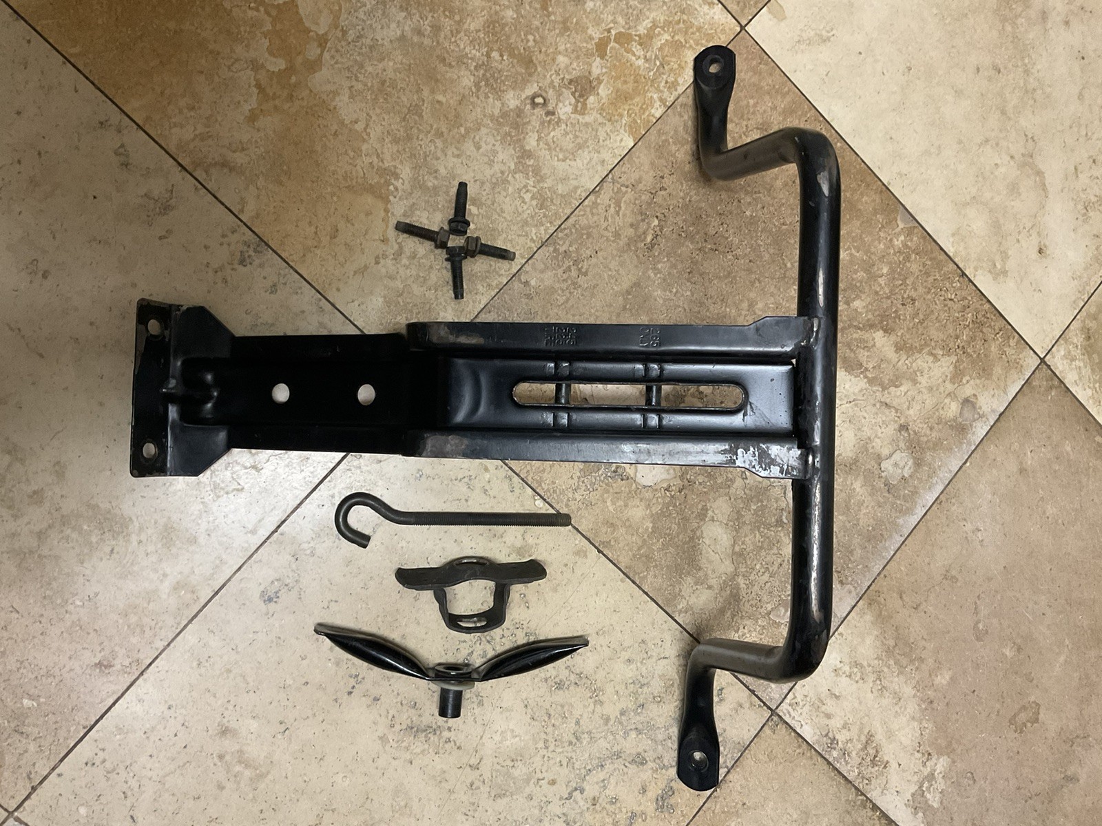 1993-1997 Chevrolet Blazer 2 Door Full Size Spare Tire Hold Down Mounting Bracket Plate Screw Nut Bolt . Good Working Condition ( Please Check The Pictures) OEM \*Please note that "used" parts may have scratches and imperfections from standard wear/usage. I try to notate specific defects on items, but may miss unapparent details. Please view photos and if you have detailed questions regarding the items condition, please feel free to message me prior to purchasing. Also, your feedback is extremely important to me. If you have issues with a purchased item, please contact me and I will do my best to resolve the issue. Otherwise, thank you for shopping with me!