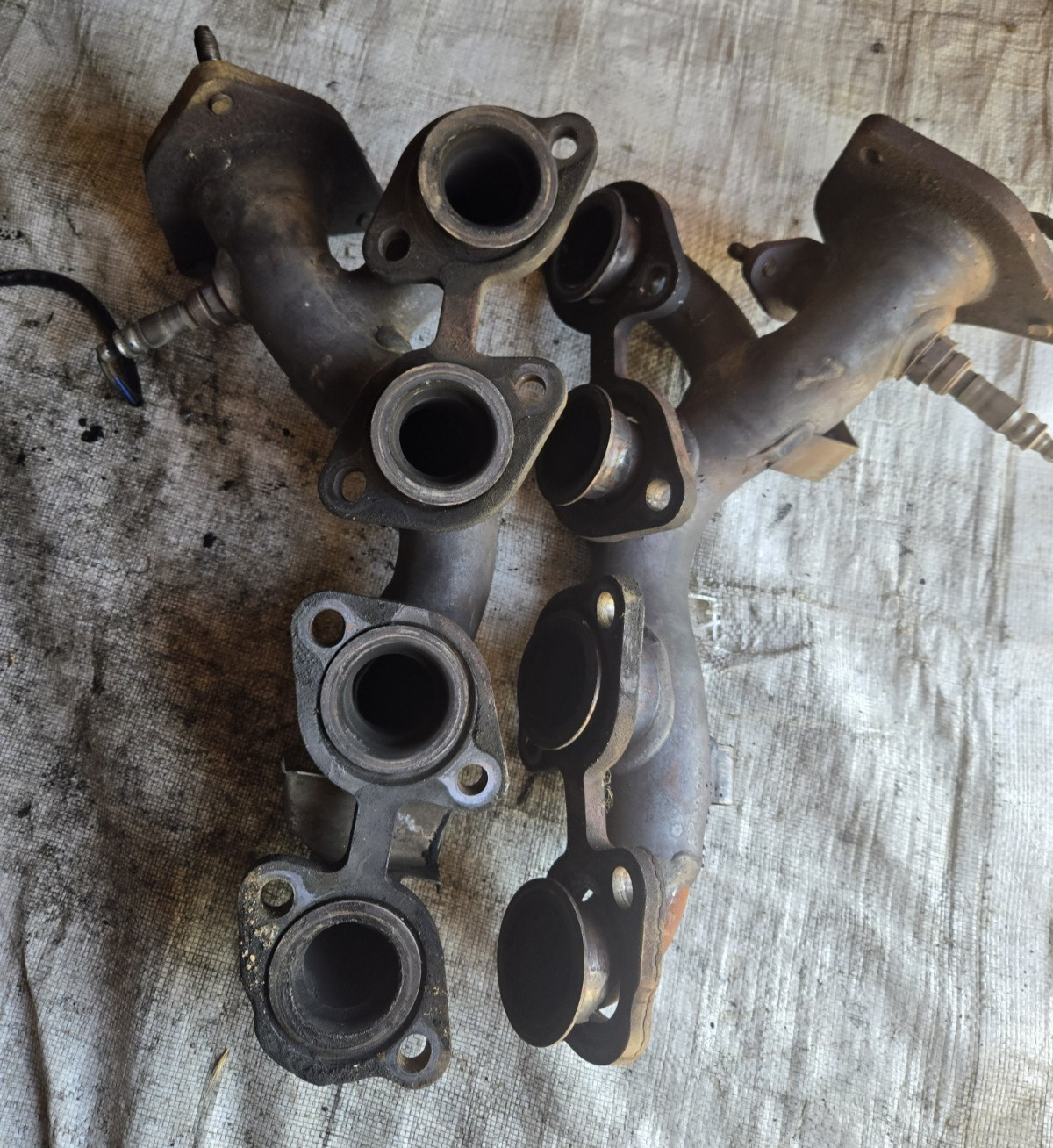 oem exhaust manifolds. one manifold has broken bolt for shield and missing one stud see pics for details.