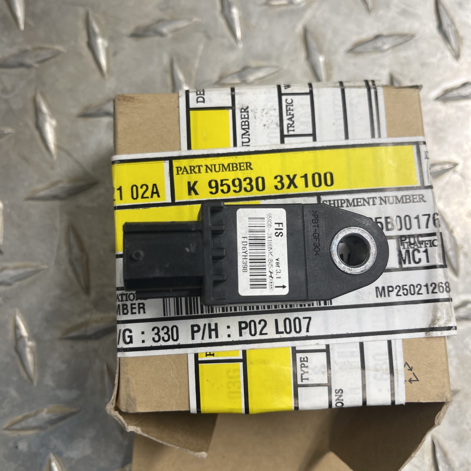 The 959303X100 OEM Front Impact Sensor is a genuine part manufactured by the original equipment manufacturer. This impact sensor, with part number 959303X100, is specifically designed for the front of a vehicle and is a crucial component in detecting and reporting impacts to help ensure safety and functioning of the vehicle's systems. With this OEM front impact sensor, vehicle owners can be assured of quality and compatibility with their vehicle's original equipment. Sensor was working and communicating when removed.