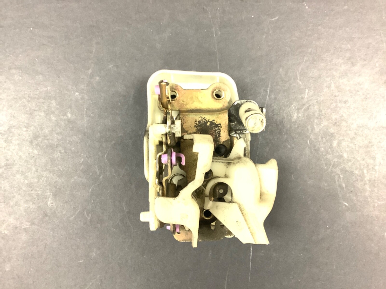 Left, driver side rear door latch assembly, power lock type, used, OEM.
