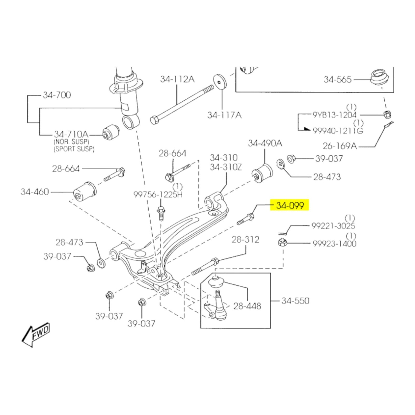 99-05 Mazda Miata OEM Front Lower Control Arm Shock Bolt Mounting GJ21-34-097A