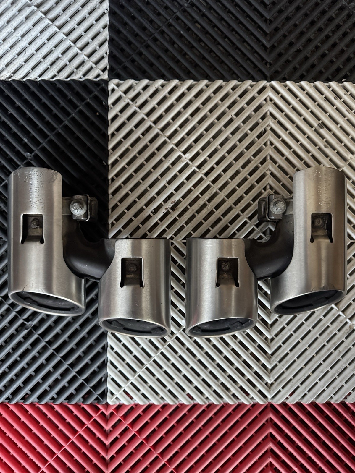 Great condition Porsche exhaust tips removed from a 2013 Carrera S with the non-PSE exhaust. Car only had 6k miles when the tips were removed and has been in storage since. Little to no flaws, no dings or dents. Perfect to replace your worn out looking or damaged tips. Part numbers 991.111.361.01 / 991.111.362.01 are shown in the pictures, please confirm fitment before purchase. Free ship within the Con-US.